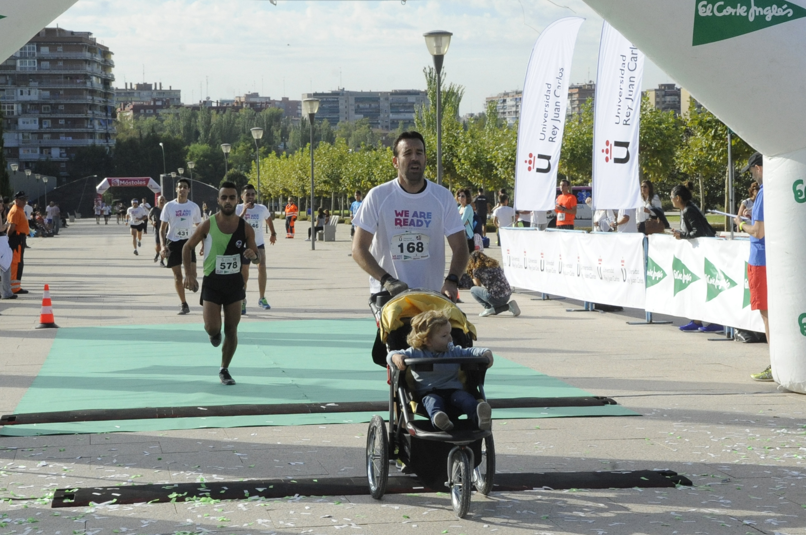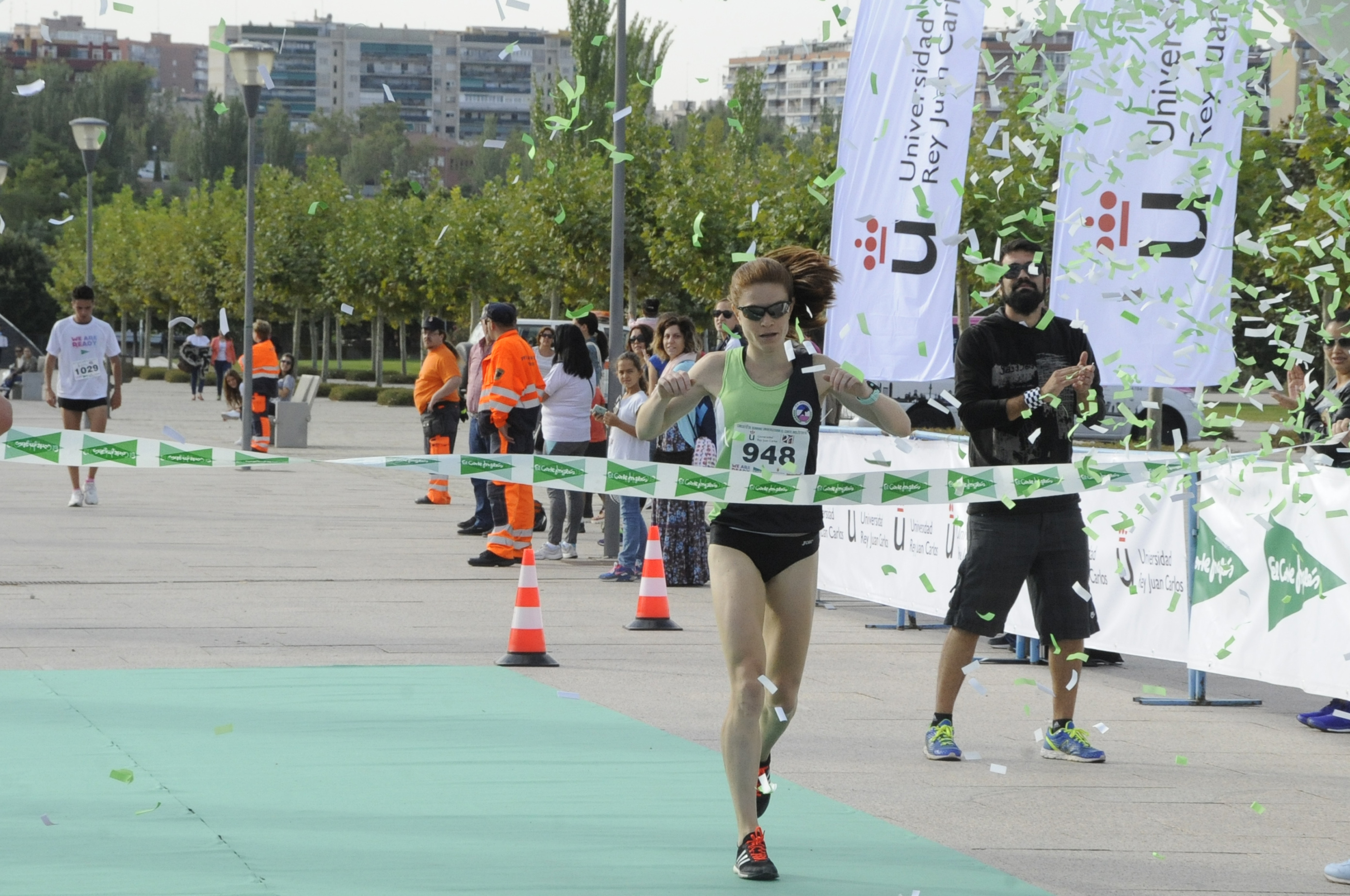 Miles de corredores universitarios participaron ayer en la cuarta prueba de la segunda edición del Circuito de Running Universitario El Corte Inglés, celebrado entre los campus de Móstoles y Alcorcón, con motivo del XX aniversario de la Universidad Rey Juan Carlos. La carrera tuvo un recorrido de 10 kilómetros y reunió a estudiantes y personal docente e investigador que además de disputar la competición, disfrutaron de la fiesta posterior. En representación del Ayuntamiento de Móstoles estuvo presente el concejal de Deportes, Agustín Martín, quien hizo entrega de trofeos junto al rector de la Universidad, Fernando Suárez Bilbao, y otras personalidades.