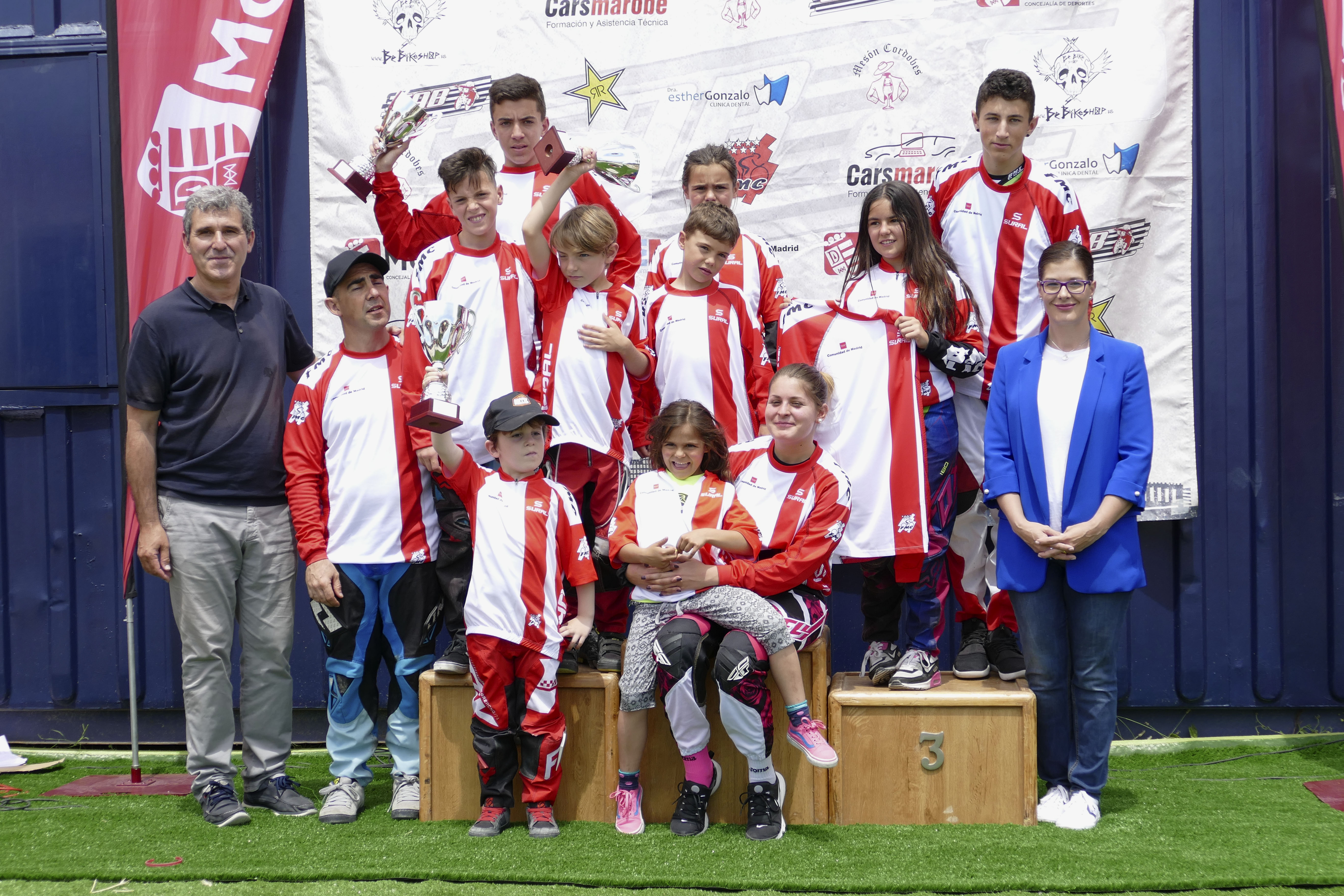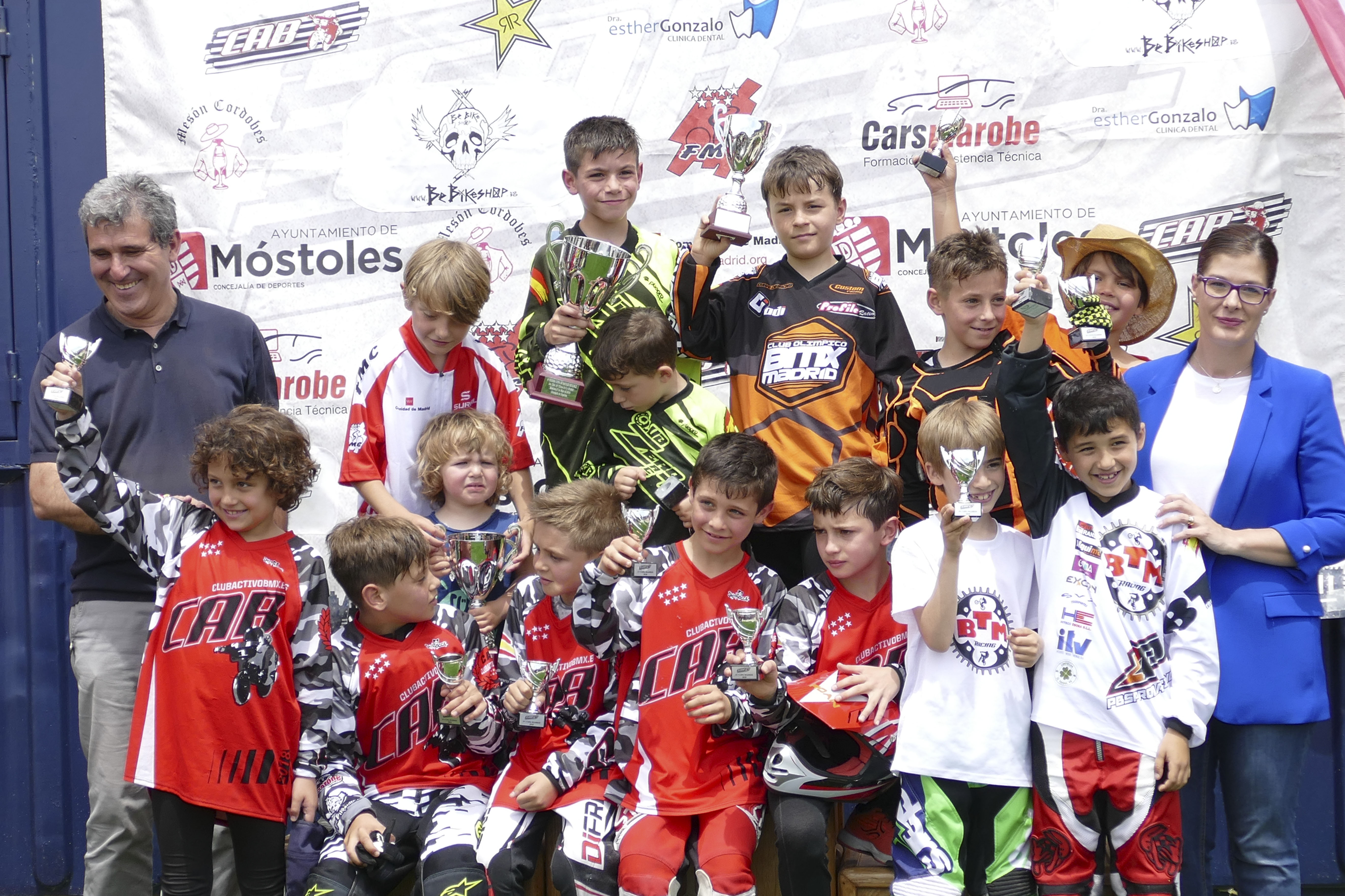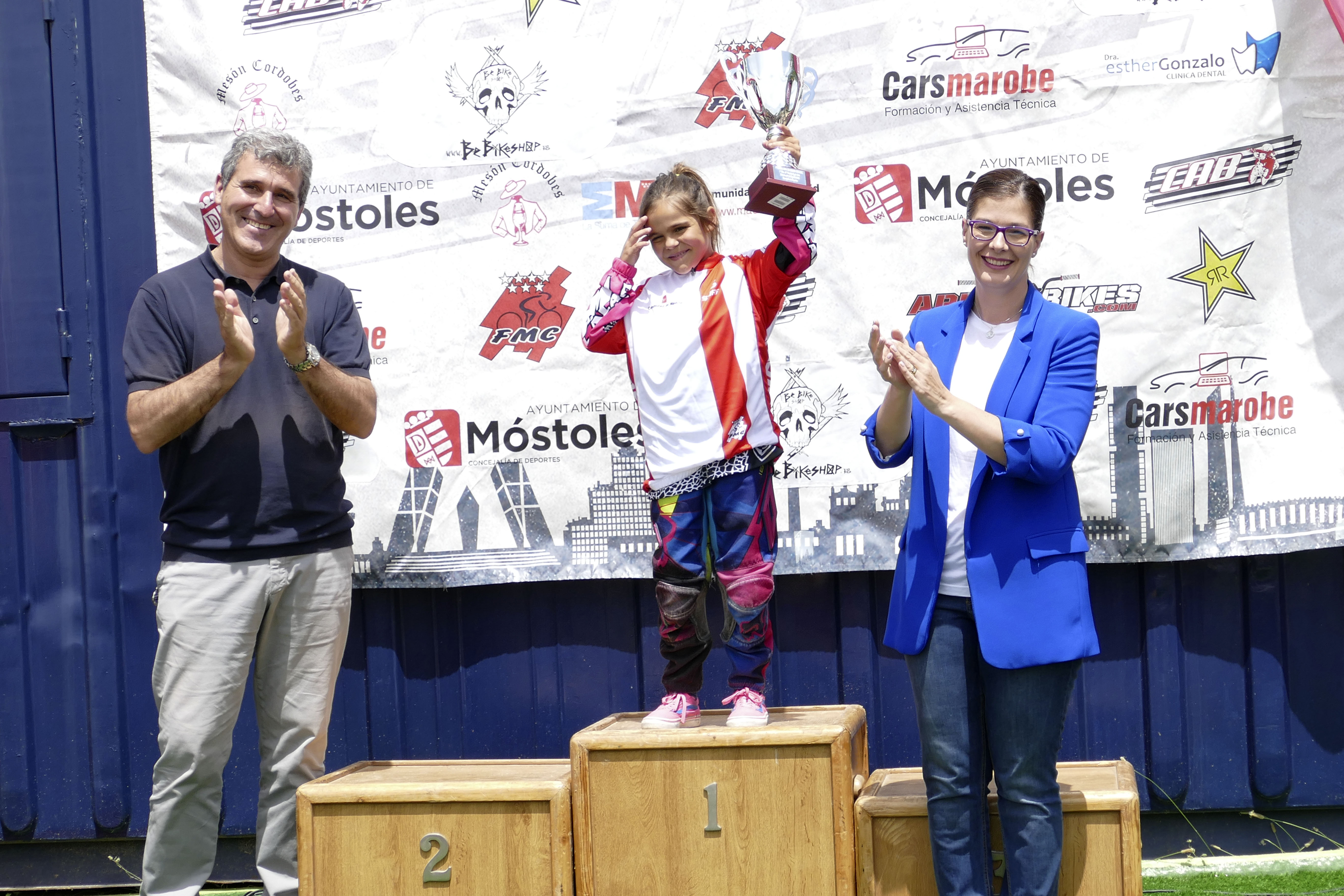 La alcaldesa de Móstoles, Noelia Posse, acompañada por el concejal de Deportes, Obras, Infraestructuras y Mantenimiento de Vías Públicas, Agustín Martín, ha hecho entrega de los Premios de la IV Copa Madrid BMX celebrada este fin de semana en Móstoles, en la que más de 200 deportistas de entre 5 y 50 años se han dado cita en este acto organizado por la Concejalía de Deportes en colaboración con el Club Activo BMX.