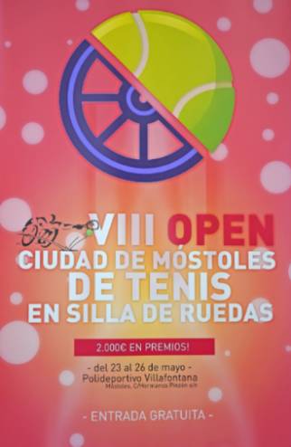 Imagen en alta resolución. Este enlace se abrirá mediante lightbox, puede haber un cambio de contextoDesde el jueves 23 hasta el domingo 26 de mayo, inclusive, se disputará en las pistas del Polideportivo Villafontana el VIII Open Nacional Ciudad de Móstoles de Tenis en silla de ruedas, organizado por el Ayuntamiento de Móstoles, con la colaboración de la Real Federación Española de Tenis, de la Federación de Tenis de Madrid, de la Fundación para el Desarrollo y la Integración (FDI) y varios patrocinadores.