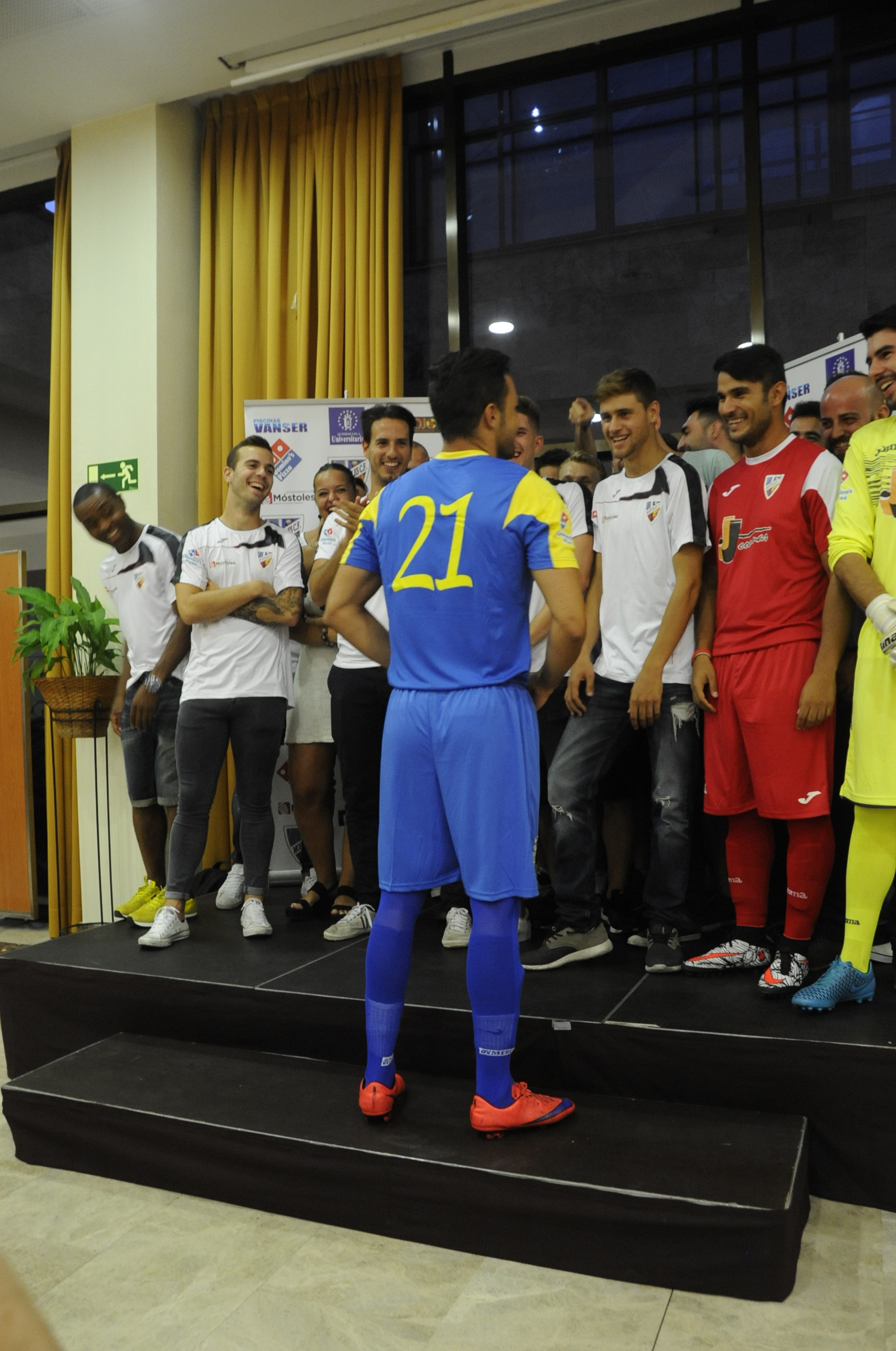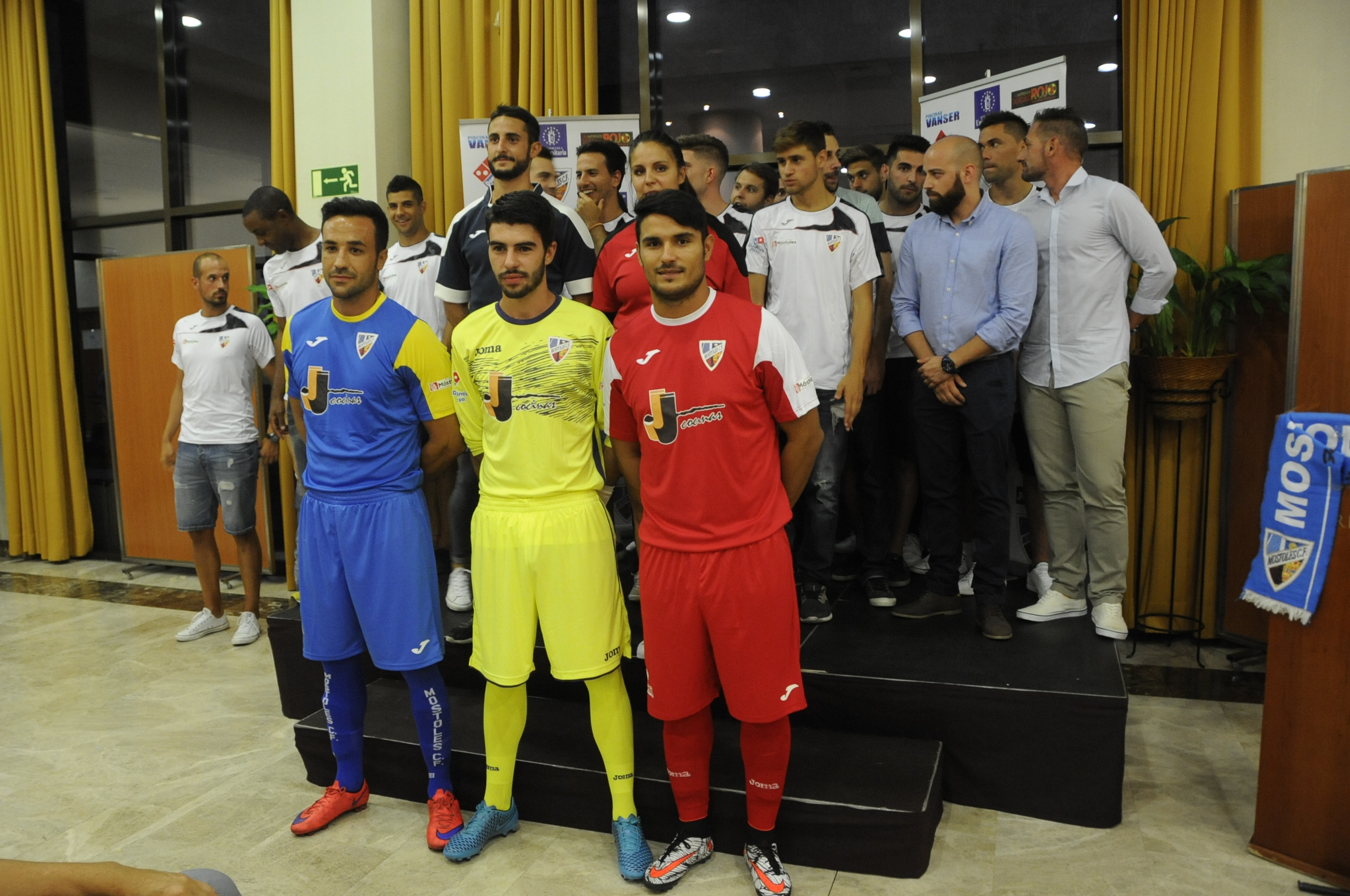 Asimismo, en el acto se presentó la plantilla del Móstoles CF 2016-2017, con 8 fichajes y 15 jugadores que continúan con su entrenador, Antonio Narro. El Móstoles CF milita en el Grupo 4 de Primera Regional (o aficionados) y busca conseguir esta temporada un anhelado ascenso. Además, se presentaron las nuevas equipaciones de Joma. Los porteros vestirán de amarillo. La segunda equipación roja y la primera azul. El equipo de rugby también lucirá los mismos colores. El acto se cerró con la presentación del Himno del Club compuesto e interpretado por el dúo músical Kome Kome.