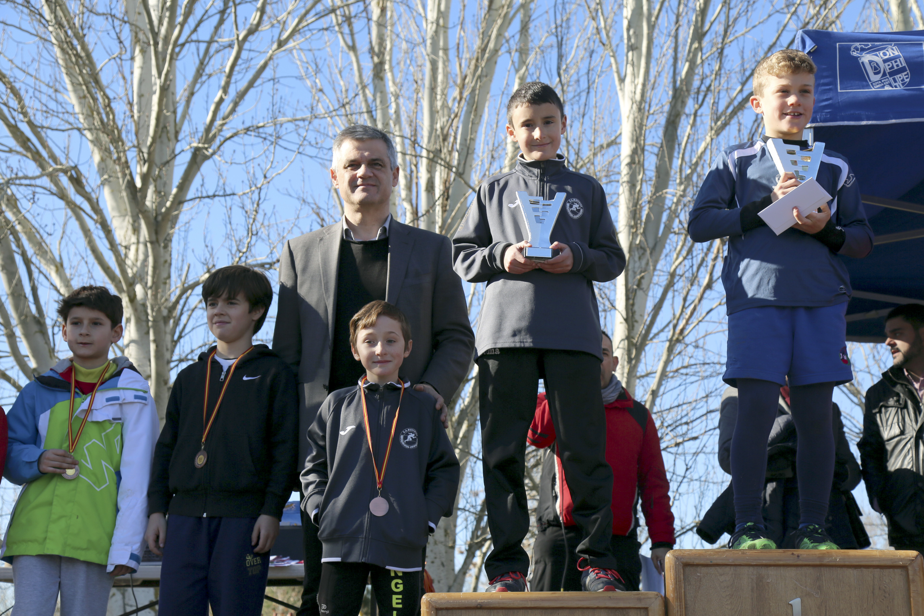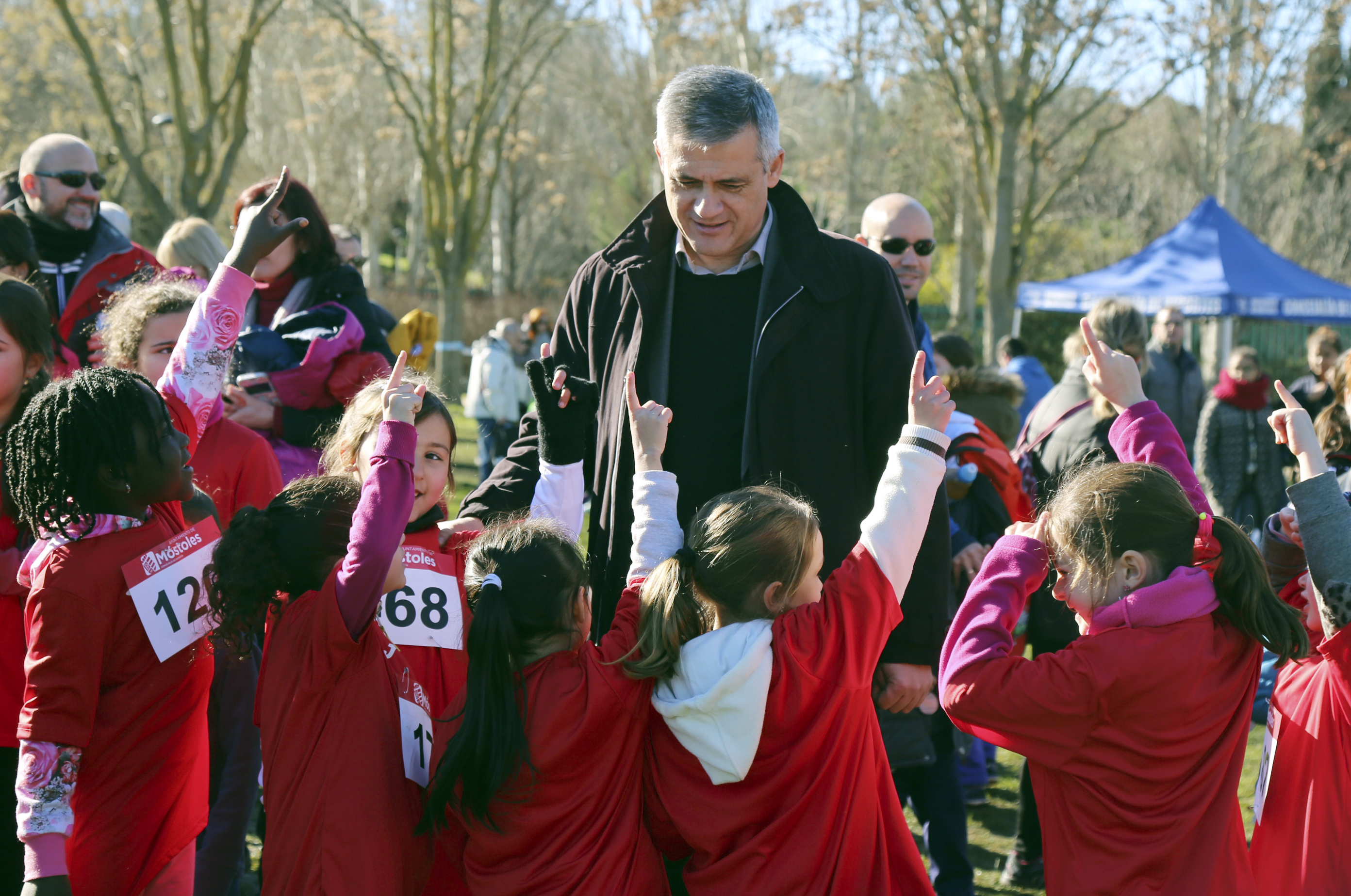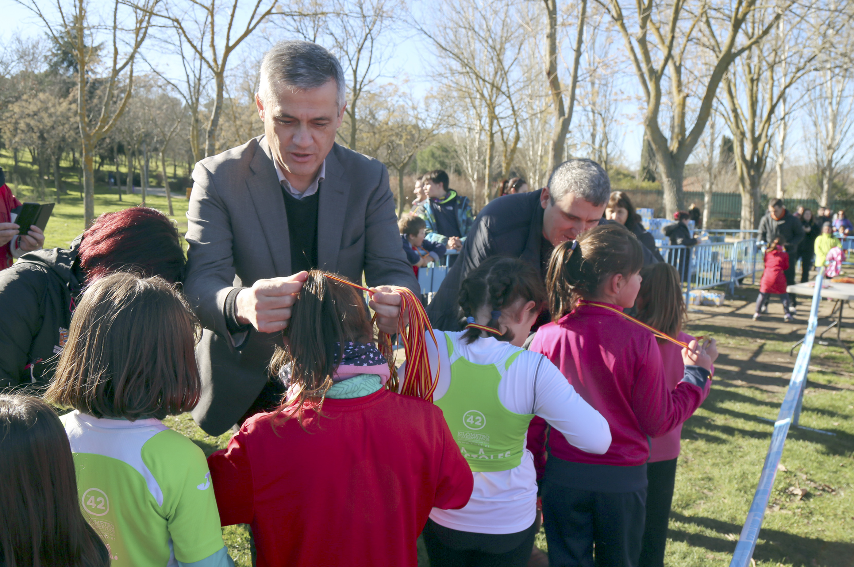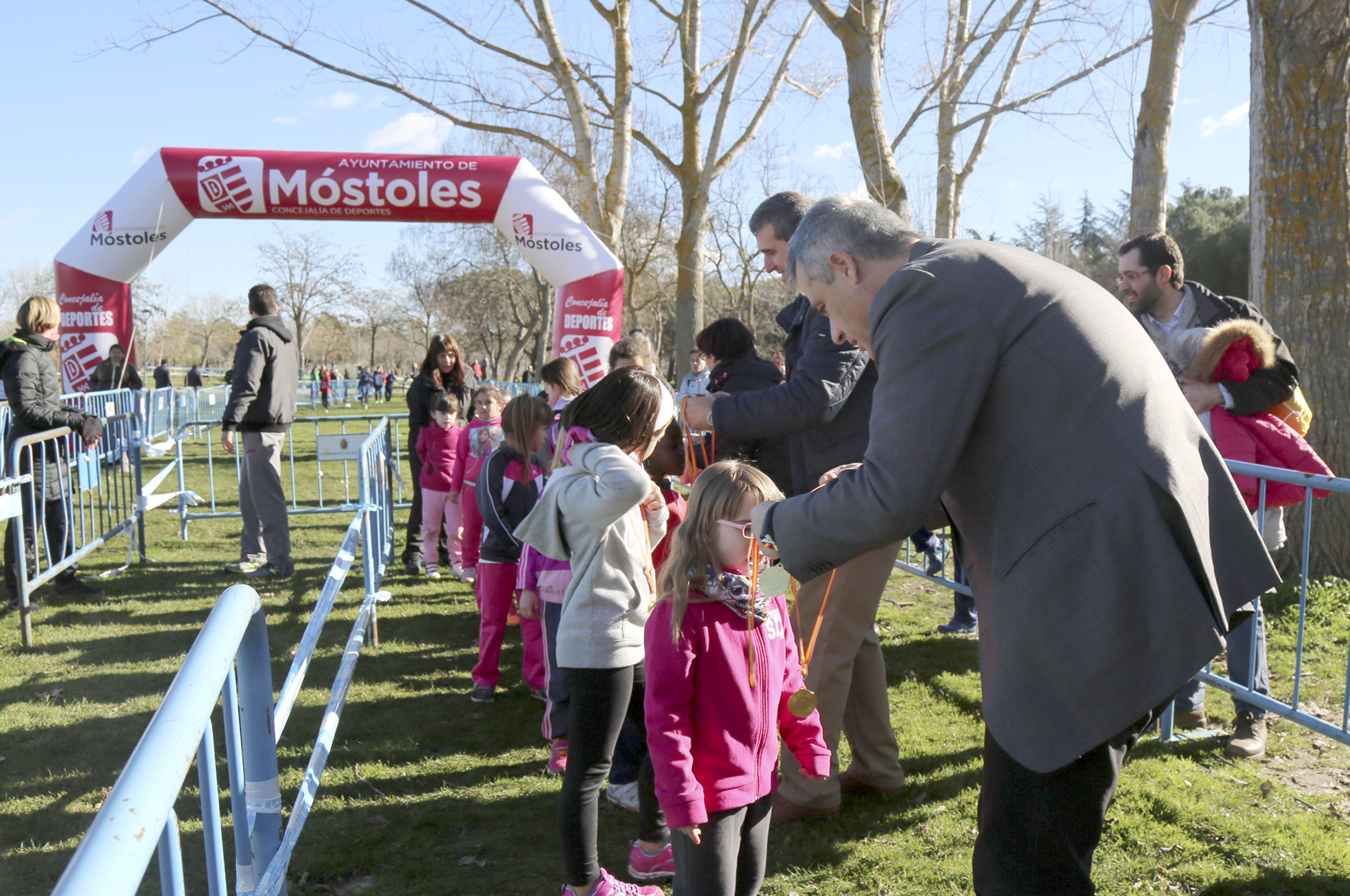 David Lucas, alcalde de Móstoles, y Agustín Martín, concejal de Cultura, Festejos y Deportes, hicieron entrega de los premios de la final municipal del Campeonato Campo a Través Escolar de Deporte Infantil, celebrado este fin de semana en el Parque de El Soto de la localidad.