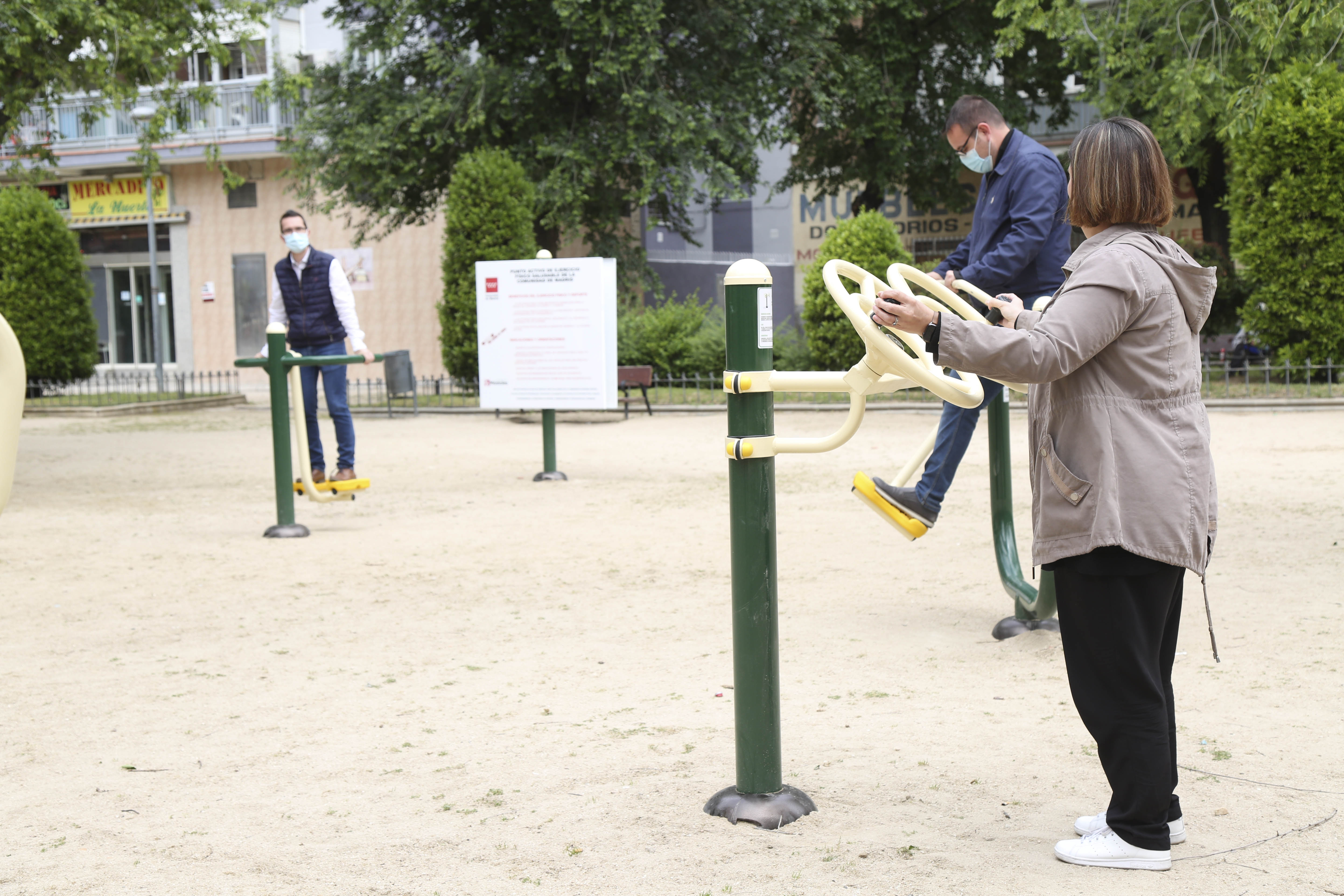 Noelia Posse visita el nuevo espacio biosaludable situado en el parque Cataluña de Móstoles