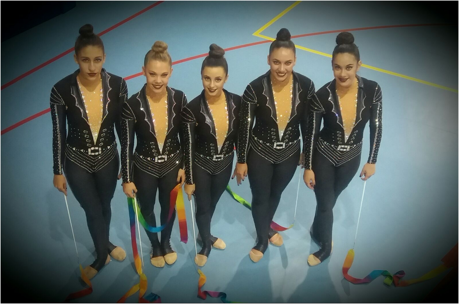 En la categoría Infantil las gimnastas Alba P, Sara E, Chantal R, Ainhoa M y María H, se subieron a lo más alto del pódium recibiendo la medalla de oro.