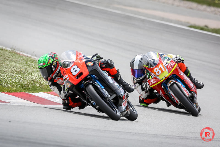 Imagen en alta resolución. Este enlace se abrirá mediante lightbox, puede haber un cambio de contexto"Comenzamos el jueves con los entrenamientos libres en seco y con muy buenas sensaciones logrando rodar muy rápido y ser el piloto más rápido en pista marcando un tiempazo de 1:59.1. Los libres del viernes se hacen en lluvia y poco a poco logro adaptarse a la pista diluviando y volver a estar entre los pilotos más rápidos en agua . Ya en los Primeros cronos en agua los hizo muy bien y se colocó con el segundo mejor tiempo ,pero los segundos cronos se secó la pista y no logro cojer el feeling necesario para poder rodar rápido y logró clasificar en P5 .Ya el domingo con pista seca salimos al Warm Up y logró hacer el P2 y bajar los tiempos . Salimos a carrera en parrilla partiendo de la P5 , se abre el semáforo y Marco hace una salida expectacular logrando ponerse al final de recta en segunda posición , pero se fueron juntando y adelantado varios pilotos ,hasta la vuelta 3 que Marco empezó a tirar muy fuerte y logró abrir hueco con todos los rivales excepto uno que logró mantener su rueda , a partir de aquí fueron adelantándose durante toda la carrera los dos pilotos y intercambiando las posiciones P1 y P2 continuamente hasta llegar los dos pilotos juntos a la última curva donde Marco intento adelantar, pero se le fue la moto pasando por línea de meta en P2 por sólo unas décimas de segundo".