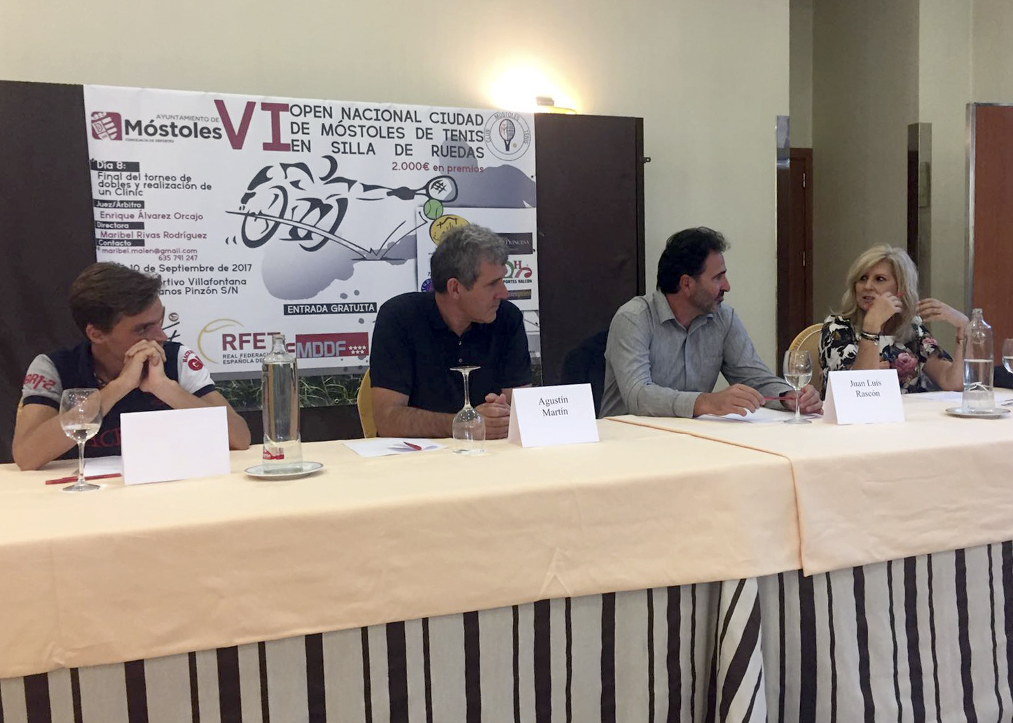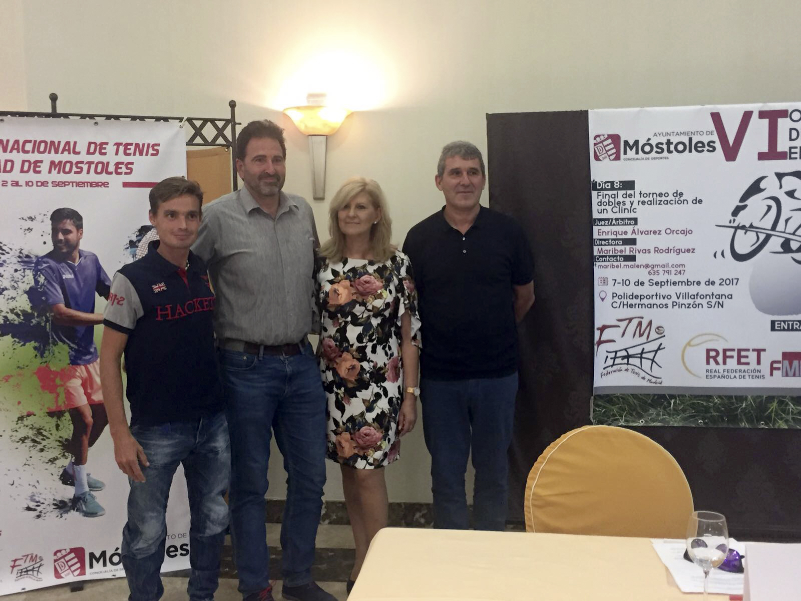Septiembre presentacion IV torneo tenis ciudad de Móstoles 1Imagen en alta resolución. Este enlace se abrirá mediante lightbox, puede haber un cambio de contextoSeptiembre presentacion IV torneo tenis ciudad de Móstoles 1El pasado viernes se ha llevado a cabo en el Hotel La Princesa la presentación del IV Torneo Nacional de Tenis `Ciudad de Móstoles´ y del VI Open Nacional de Tenis en silla de ruedas. El primero se disputará desde el 2 al 10 de septiembre, mientras que el segundo, tendrá lugar del 7 al 10 de septiembre. Ambos en las pistas del Polideportivo Municipal Villafontana.