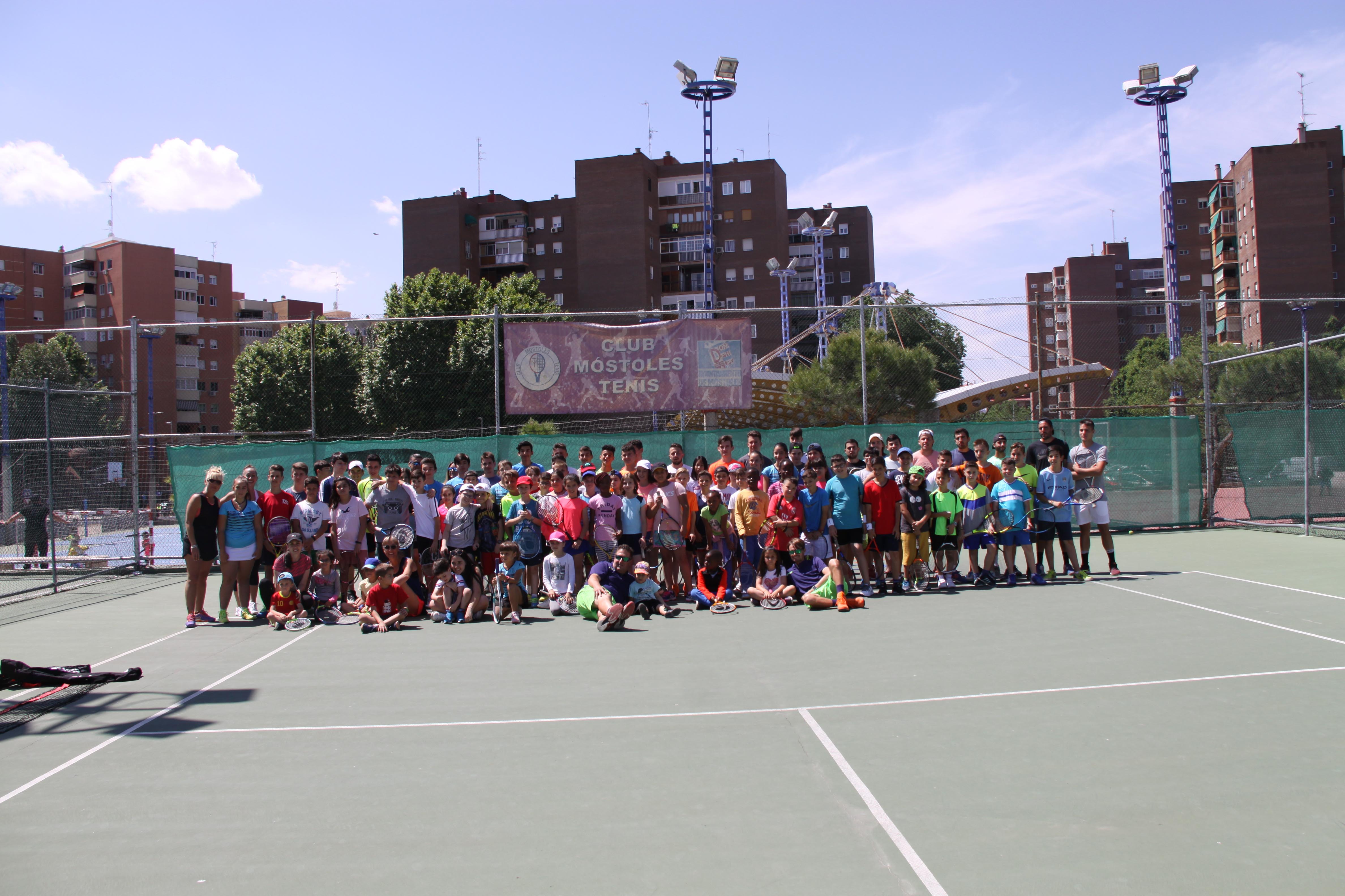 Imagen en alta resolución. Este enlace se abrirá mediante lightbox, puede haber un cambio de contextoGran éxito del Día de la Raqueta de Móstoles 2019 que se celebró el pasado sábado 8 de junio en el Polideportivo Municipal de Villafontana con la organización del Club Móstoles Tenis y la colaboración de la Concejalía de Deportes de Mostoles y Federacion de Tenis de Madrid. Se contó con la participación de más de 150 participantes. Se hizo el Clinic de tenis enseñando el golpe de derecha, revés, volea de derecha y volea de revés y a continuación se dieron todos los regalos a los participantes, para acabar con los ganadores del saque más rápido.