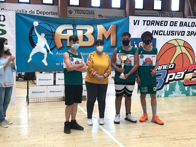 La Alcaldesa de Móstoles, Noelia Posse, acompañada por el Concejal de Deportes, Carlos Rodríguez, la Portavoz de Podemos, Mónica Monterreal, la Concejala de Presidencia y Desarrollo Urbano, Marisa Ruiz, y la Concejala de Derechos Sociales y Mayores, Ángela Viedma, han presidido este fin de semana las entregas de trofeos y medallas a los ganadores de la VI edición del Torneo de Baloncesto Inclusivo 3pá3, celebrado este fin de semana en el Polideportivo Municipal de Villafontana.