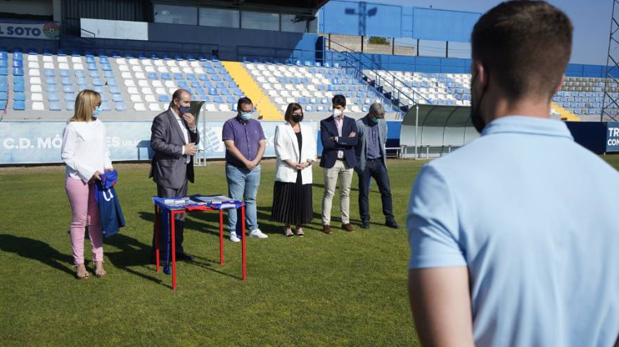 Imagen en alta resolución. Este enlace se abrirá mediante lightbox, puede haber un cambio de contextoLa Alcaldesa de Móstoles, Noelia Posse, acompañada por el Concejal de Deportes, Carlos Rodríguez, ha felicitado esta mañana a los jugadores del CD Móstoles URJC, por su histórico ascenso a Segunda División de la Real Federación Española de Fútbol (RFEF). En el evento se encontraban presentes la plantilla de jugadores, el equipo técnico y directivos del CD Móstoles URJC.