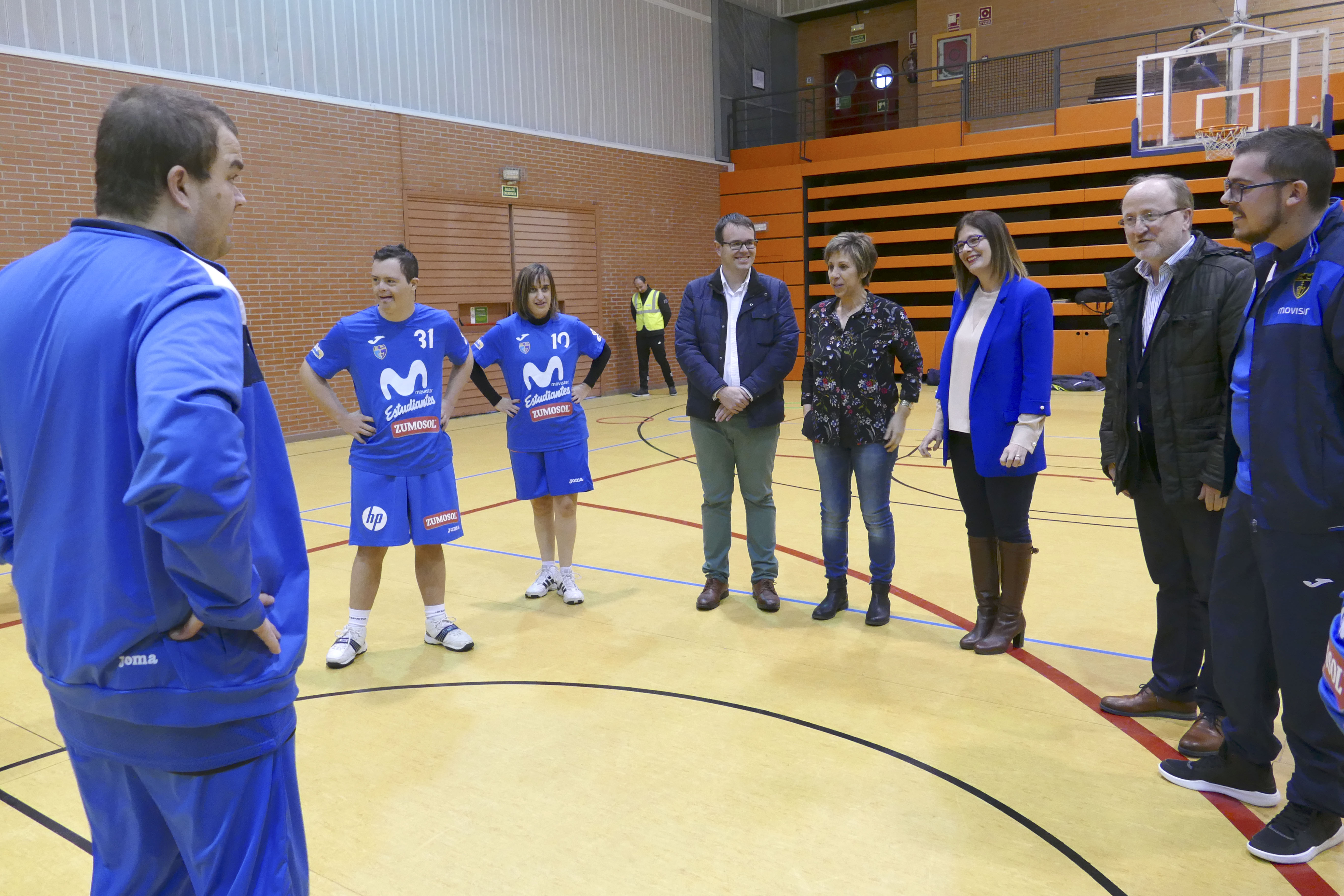 La alcaldesa de Móstoles, Noelia Posse, acudió ayer al Polideportivo los Rosales para disfrutar de uno de los entrenamientos del Club de Baloncesto Ciudad de Móstoles y del Grupo Amás.