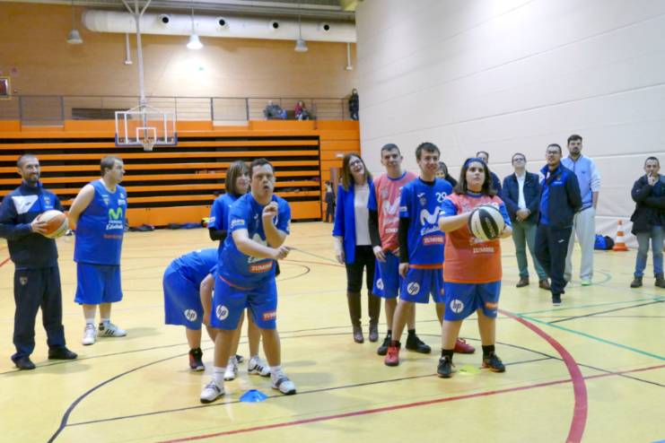 La alcaldesa de Móstoles, Noelia Posse, acude al entrenamiento del Club de Baloncesto Ciudad de Móstoles y Grupo AMÁS