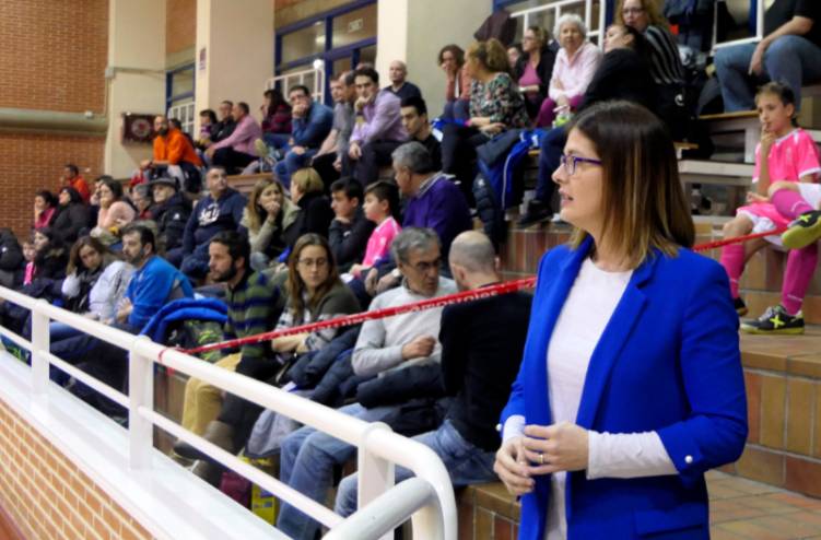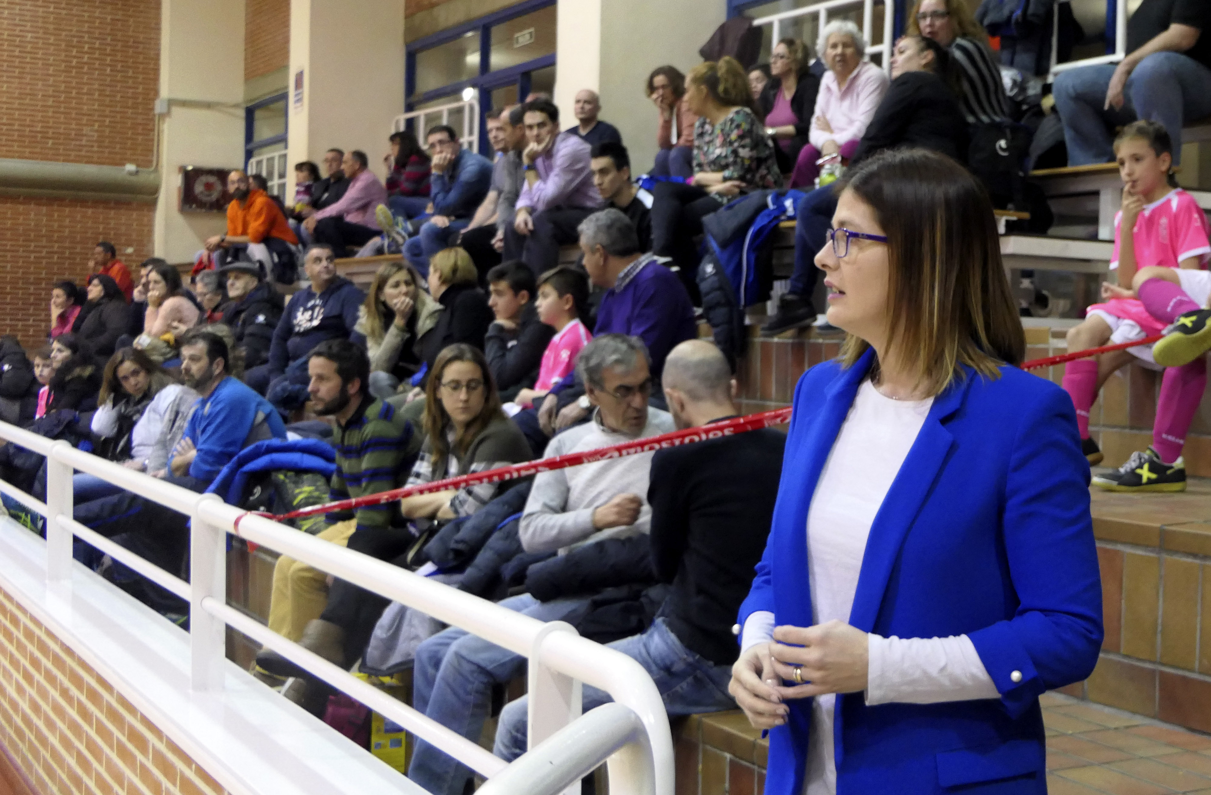 La alcaldesa, Noelia Posee, asiste al encuentro entre del FSF Móstoles y el Ciudad de Móstoles, con motivo del Día Internacional de la Mujer