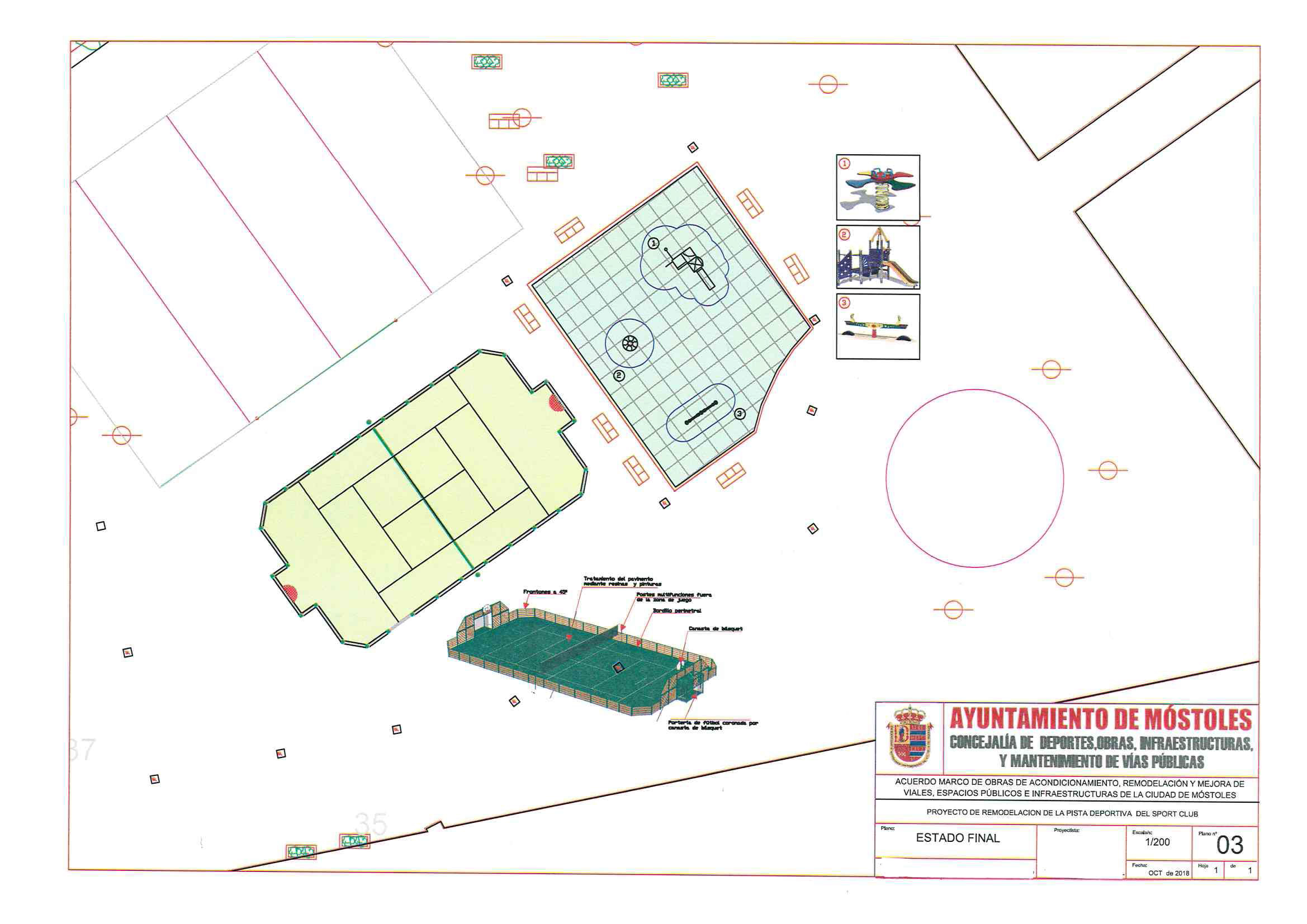 Imagen en alta resolución. Este enlace se abrirá mediante lightbox, puede haber un cambio de contextoEl Gobierno de Móstoles ha aprobado en el día de hoy en Junta de Gobierno Local el proyecto de remodelación de la pista deportiva y la zona infantil del Sport Club, comprendida entre la c/Libertad, c/Barcelona y Av. de la ONU, a propuesta de la concejalía de Deportes, Obras, Infraestructuras y Mantenimiento de las Vías Públicas.