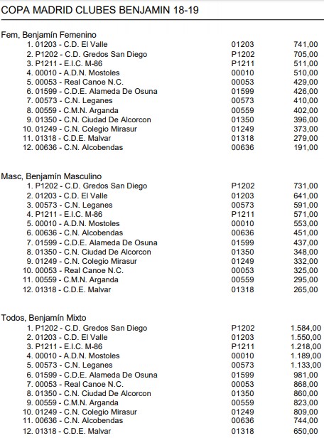 El equipo mostoleño compitió brillantemente, rebajando sus marcas en general, y dándolo todo para rozar los puestos de honor. En la clasificación femenina quedaron a sólo un punto del tercer puesto del pódium, en la masculina quedaron quintos, y en la general a sólo 29 puntos del tercer lugar, sólo superados por clubes de colegios con varias piscinas, (Gredos San Diego y El Valle), o por la escuela de la Federación Madrileña, equipos con muchos más espacios y recursos, lo que da todavía más mérito al equipo mostoleño y a su entrenador Miguel Ángel Moreno.