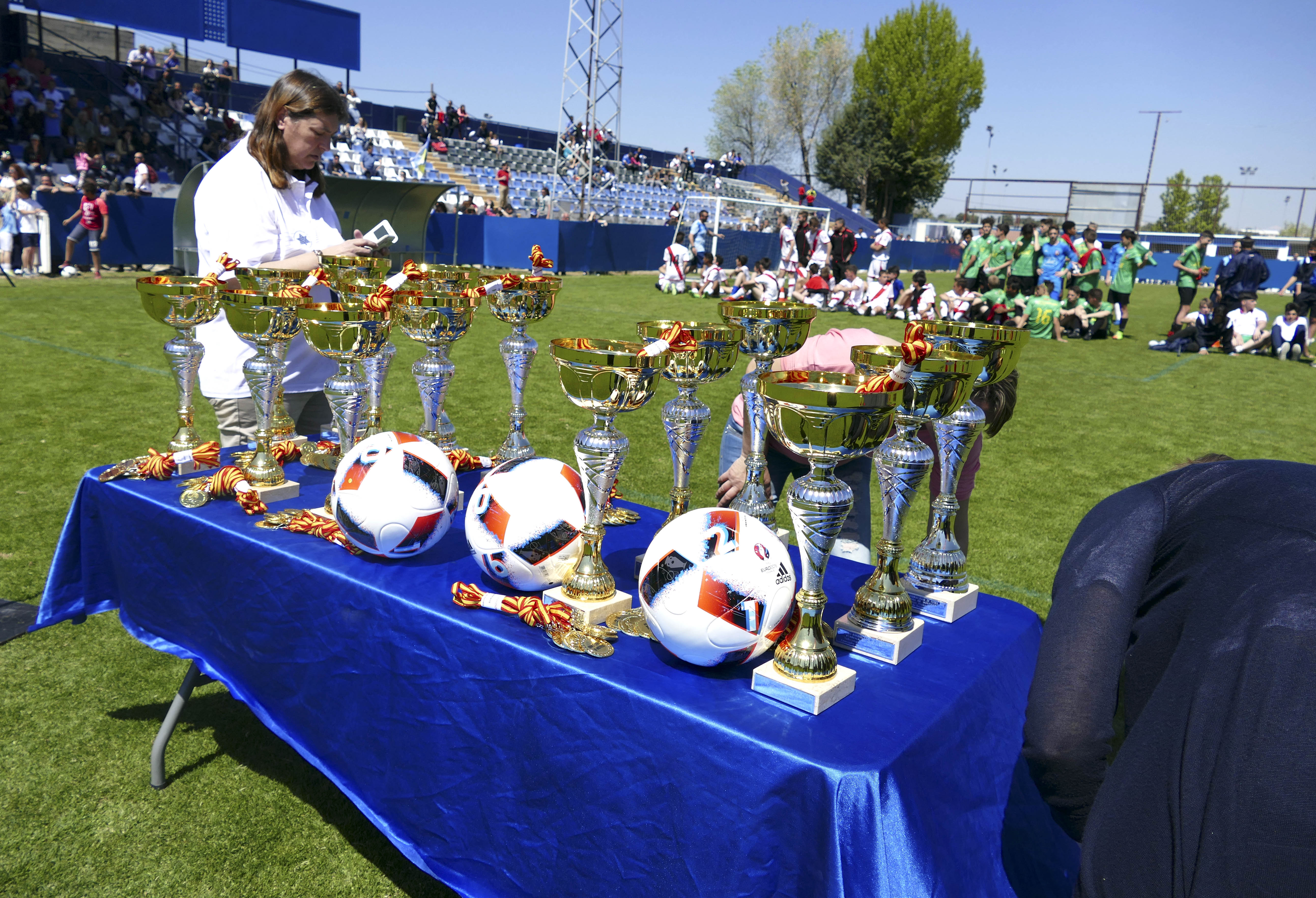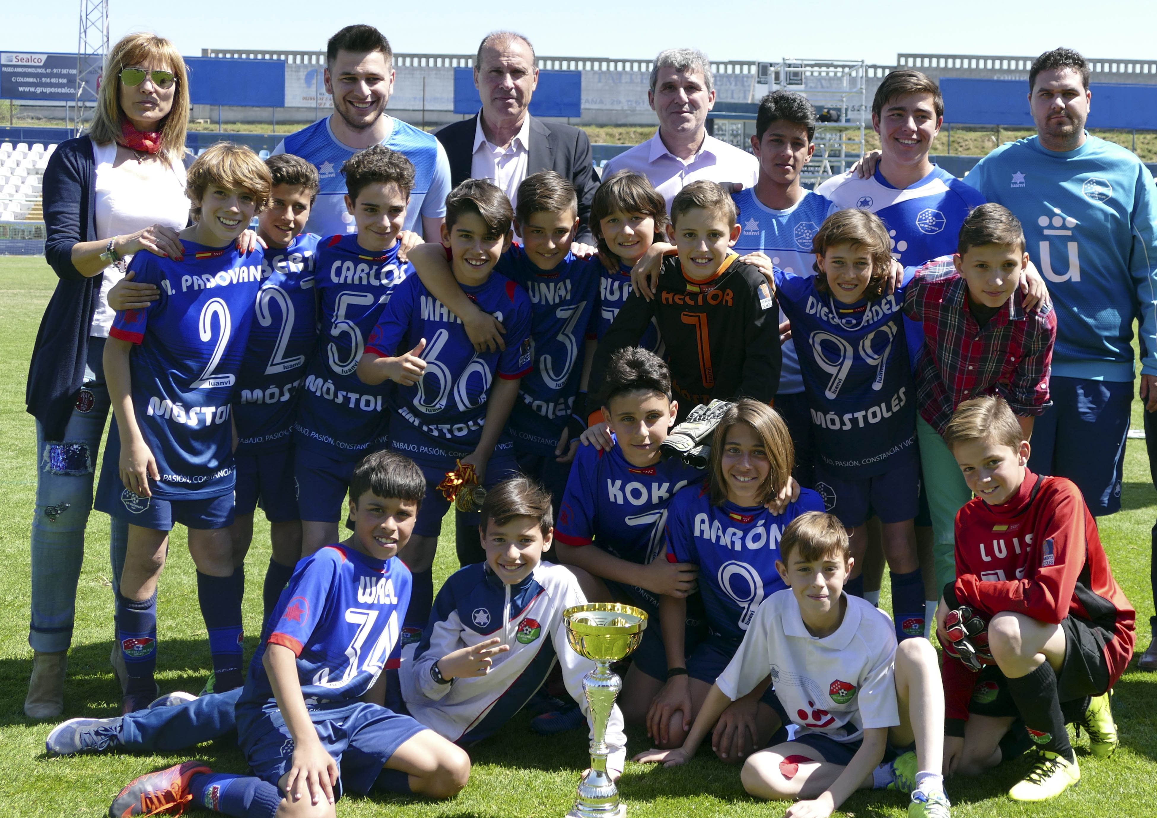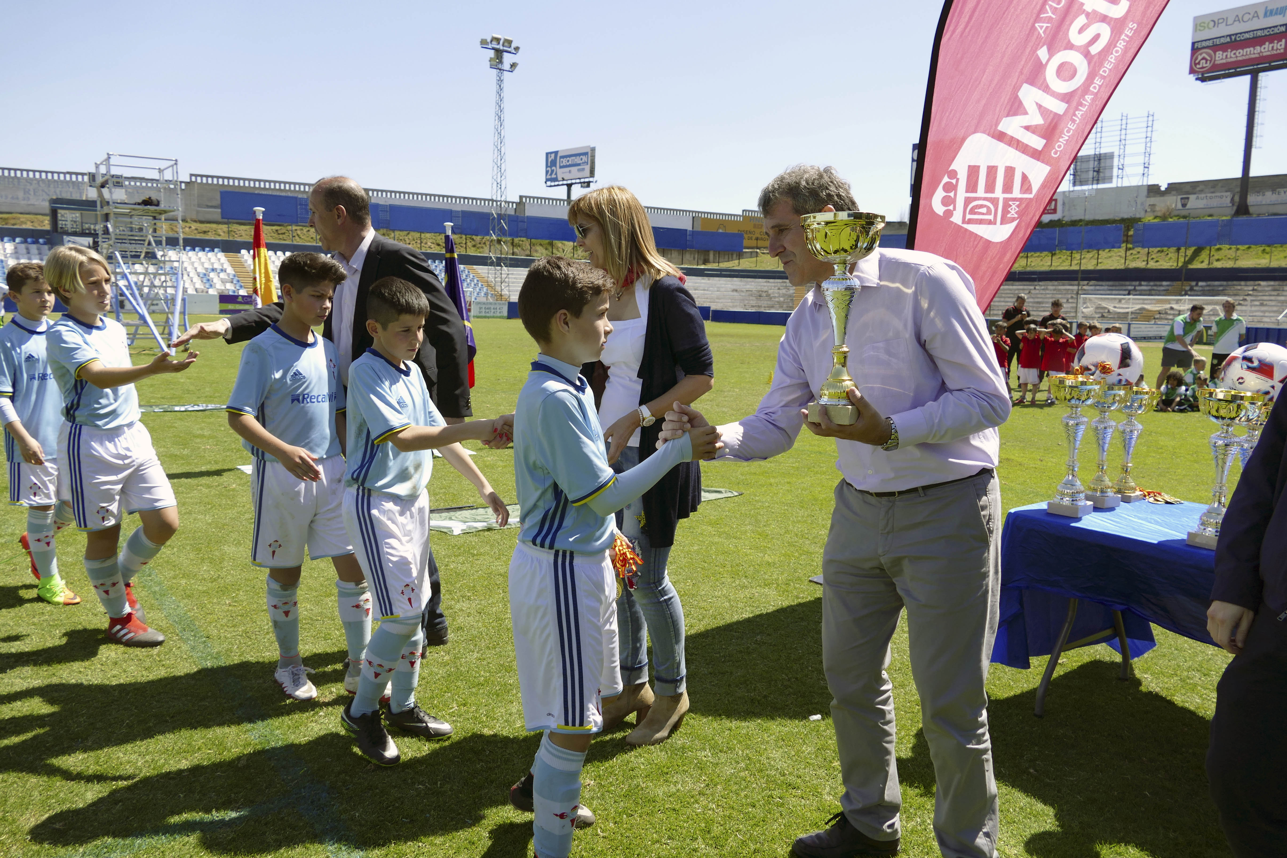 Imagen en alta resolución. Este enlace se abrirá mediante lightbox, puede haber un cambio de contextoLos campos de fútbol "Iker Casillas" de Móstoles y el Estadio Municipal "El Soto" de hierba natural acogieron, los pasados días 8 y 9 de abril, la XV edición del TorneoInternacional de Fútbol Base `Estrella de Móstoles´, uno de los más importantes de nuestro país. Patrocinado por el Ayuntamiento de Móstoles, la Universidad Rey Juan Carlos y organizado por el C.D. Móstoles URJC, el acto de entrega de trofeos contó con la participación del concejal de Deportes, Agustín Martín.