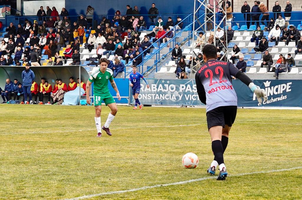 Tras el descanso, el CD Móstoles salió al césped de El Soto con una intensidad alta y buscando abrir el marcador lo antes posible. En el minuto 50, Pradillos adelantaba a los azulones con un remate de cabeza, tras un saque de esquina botado por Portilla.