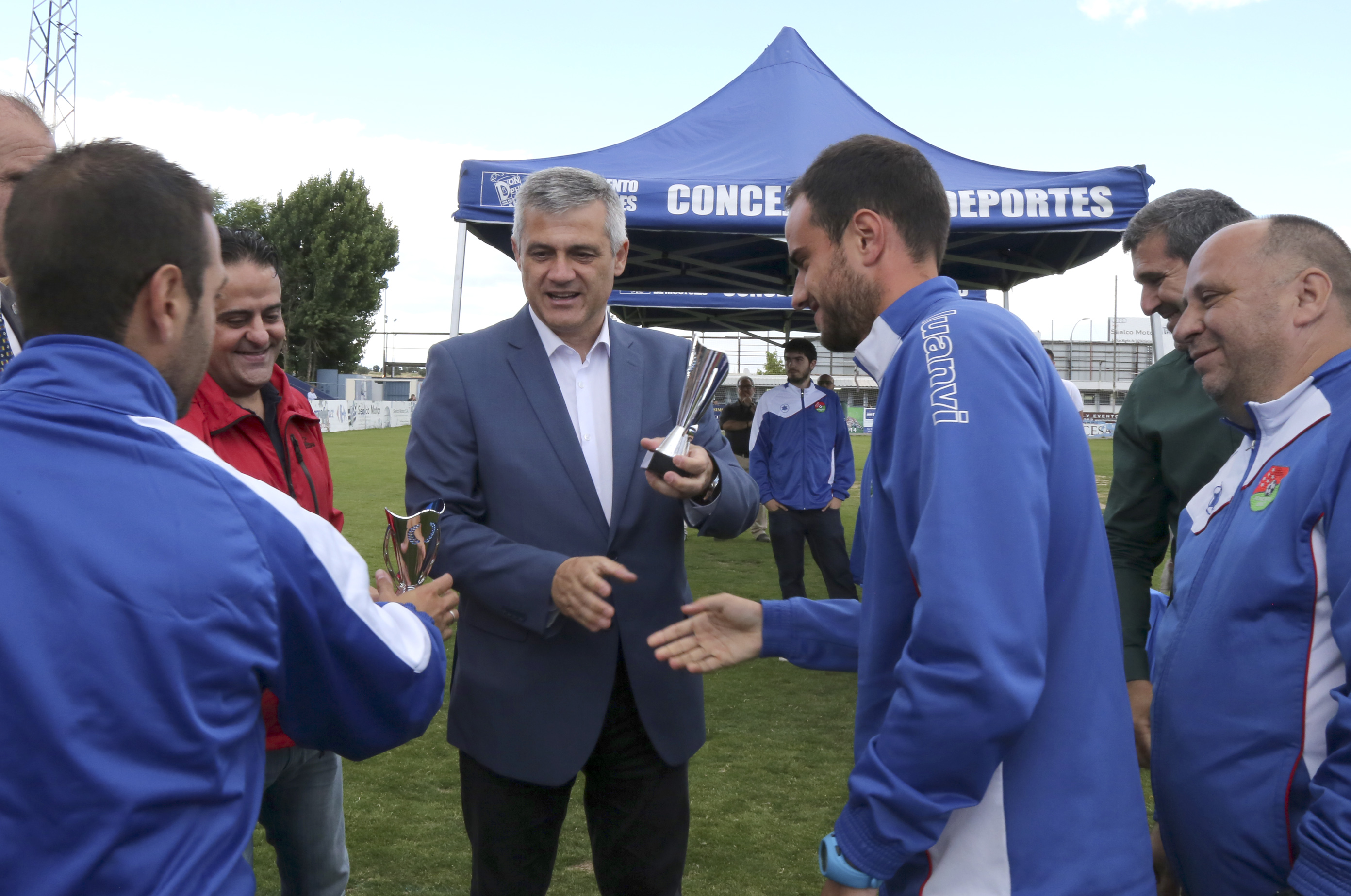 Imagen en alta resolución. Este enlace se abrirá mediante lightbox, puede haber un cambio de contextoCon motivo del cierre de la temporada 2015 – 2016, el CD Móstoles URJC celebró en la tarde de ayer la entrega de trofeos y medallas a los jugadores y a los equipos de sus diferentes categorías. Un acto al que asistieron el alcalde de Móstoles, David Lucas, el concejal de Cultura y Deportes, Agustín Martín, el concejal de Urbanismo y Vivienda, Eduardo Gutiérrez y el concejal del Grupo Popular, Colomán Trabado.