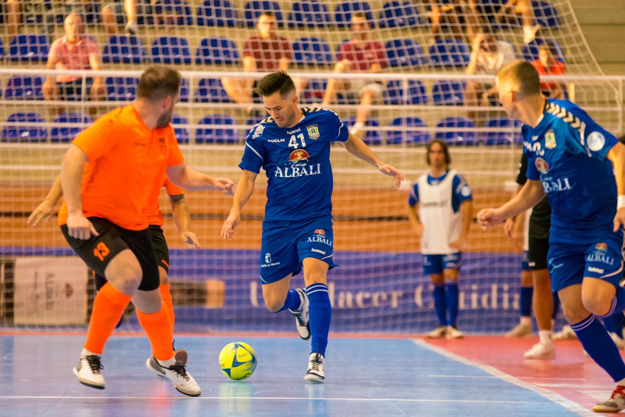 Imagen en alta resolución. Este enlace se abrirá mediante lightbox, puede haber un cambio de contextoEl Ciudad de Móstoles FS fue derrotado por el Viña Albali Valdepeñas FS, conjunto de primera división y que ejercía como anfitriones del conjunto mostoleño, en su primer encuentro de pretemporada. A pesar de ello, cabe destacar, sin embargo, las buenas sensaciones ofrecidas por los mostoleños, así como el debut con el primer equipo de tres jugadores del filial (Humanes, Guancho y Sergiete) que demuestran la filosofía de cantera del conjunto dirigido por Santa.