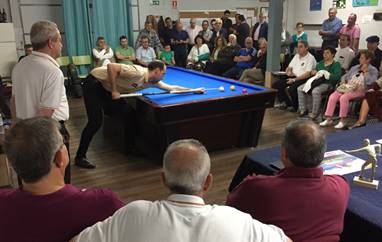 Billar a 3 bandas 1Imagen en alta resolución. Este enlace se abrirá mediante lightbox, puede haber un cambio de contextoBillar a 3 bandas 1La Concejalía de Deportes ha colaborado en el XIX Villa de Móstoles de Billar a 3 bandas, el campeonato fue un éxito de participación y de público, y ayer domingo día de la final, abarrotó la sala del Billar Móstoles en la calle Navalcarnero Nº4.