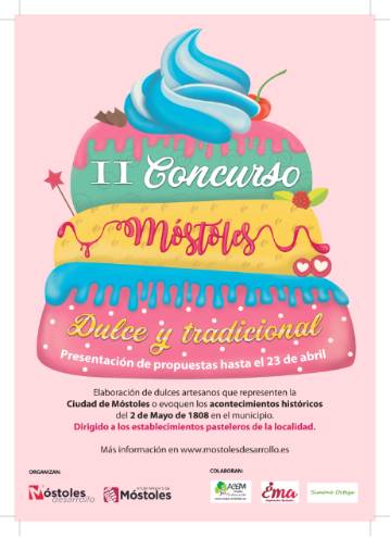 Imagen en alta resolución. Este enlace se abrirá mediante lightbox, puede haber un cambio de contextoEl Ayuntamiento de Móstoles, y su empresa Municipal, Móstoles Desarrollo Promoción Económica S.A, con la colaboración de ACEPA Móstoles, la Asociación de Mujeres Empresarias de Móstoles (EMA) y la Escuela de Hostelería y Turismo Simone Ortega, ponen en marcha por segundo año consecutivo el concurso "Móstoles Dulce y Tradicional" para elegir el mejor dulce elaborado artesanalmente que represente al municipio de Móstoles y de paso evocar el histórico levantamiento del 2 de Mayo de 1808 contra las tropas francesas.