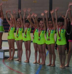 Y para terminar, el conjunto cadete cinco aros, realizaba dos ejercicios sin fallos a pesar del riesgo que este entero implicaba, que les valió para proclamarse también Campeonas de la Comunidad de Madrid siendo de nuevo primeras clasificadas.