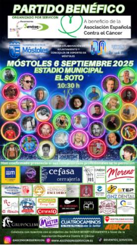 Móstoles acogerá el próximo sábado 6 de septiembre un partido de fútbol benéfico entre famosos a favor de la Asociación Española Contra el Cáncer (AECC).