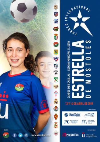 Imagen en alta resolución. Este enlace se abrirá mediante lightbox, puede haber un cambio de contextoEl CD Móstoles URJC en colaboración con la Concejalía de Deportes celebrará este fin de semana, un año más, el Torneo Internacional de Fútbol Base Estrella de Móstoles. La entidad deportiva mostoleña organiza este sábado 13 y domingo 14 de abril la XVII Edición del torneo, que se disputará en las categorías Prebenjamín, Benjamín, Alevín, Infantil e Infantil Femenino. Con la asistencia de algunas de las mejores canteras del fútbol español, así como de equipos de otras partes del mundo que conforman un cartel internacional, el torneo volverá a ser uno de los eventos de fútbol base más importante del año en nuestro país. El Campo Municipal de Fútbol El Soto y los Campos Municipales de Fútbol Iker Casillas de Móstoles (Avda. Iker Casillas s/n) serán las sedes de toda la competición.