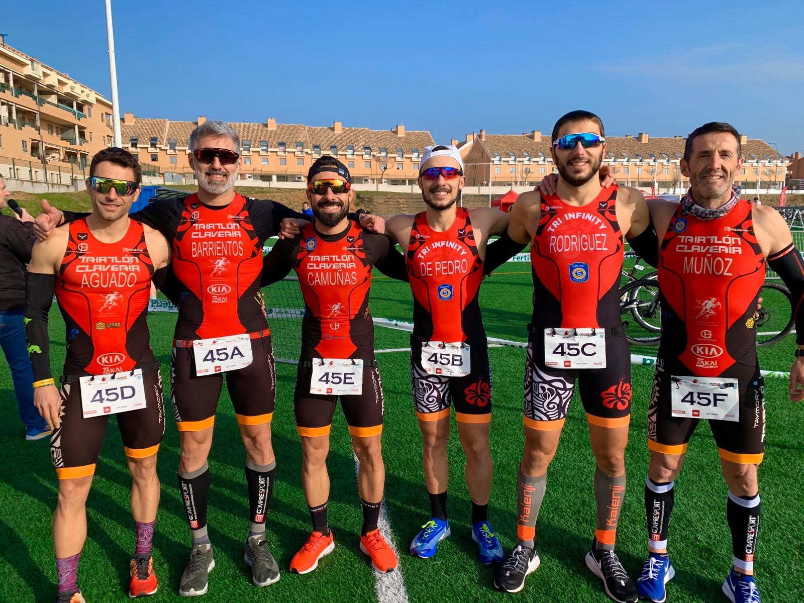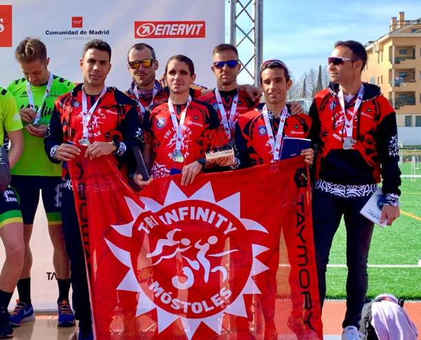 Este año el Club de Triatlón TriInfinity de Móstoles presentaba dos equipos élite, masculino y femenino, y 3 equipos más en Grupos de Edad. Un total de 30 participantes formando parte de 5 equipos en el que tres de ellos han logrado subir al pódium representando al Club de Móstoles.