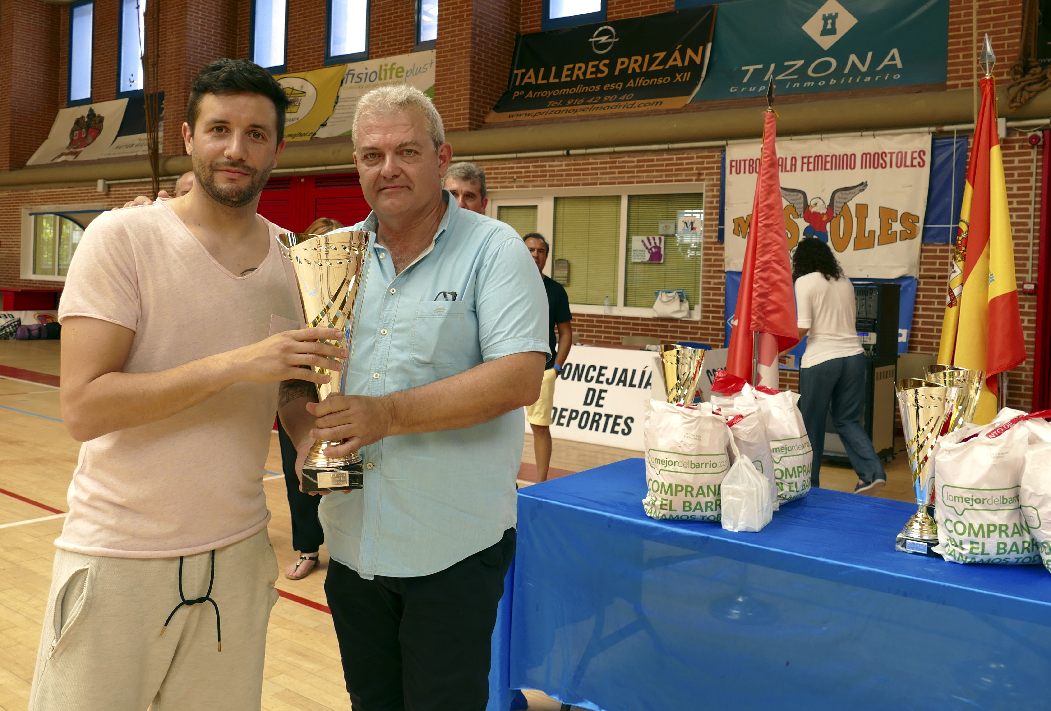 Imagen en alta resolución. Este enlace se abrirá mediante lightbox, puede haber un cambio de contextoEl concejal de Deportes, Agustín Martín, hizo entrega ayer de los premios en las finales de la Copa de los Municipios del Sur de Madrid, una competición en la que los campeones de las ligas de fútbol-7, fútbol-11, baloncesto, fútbol-sala y voleibol de los diferentes municipios participantes (Móstoles, Getafe, Leganés y Fuenlabrada) han disputado este torneo a través de un sistema de semifinal y final, organizado por el Ayuntamiento de Móstoles, con las colaboración de los otros ayuntamientos.