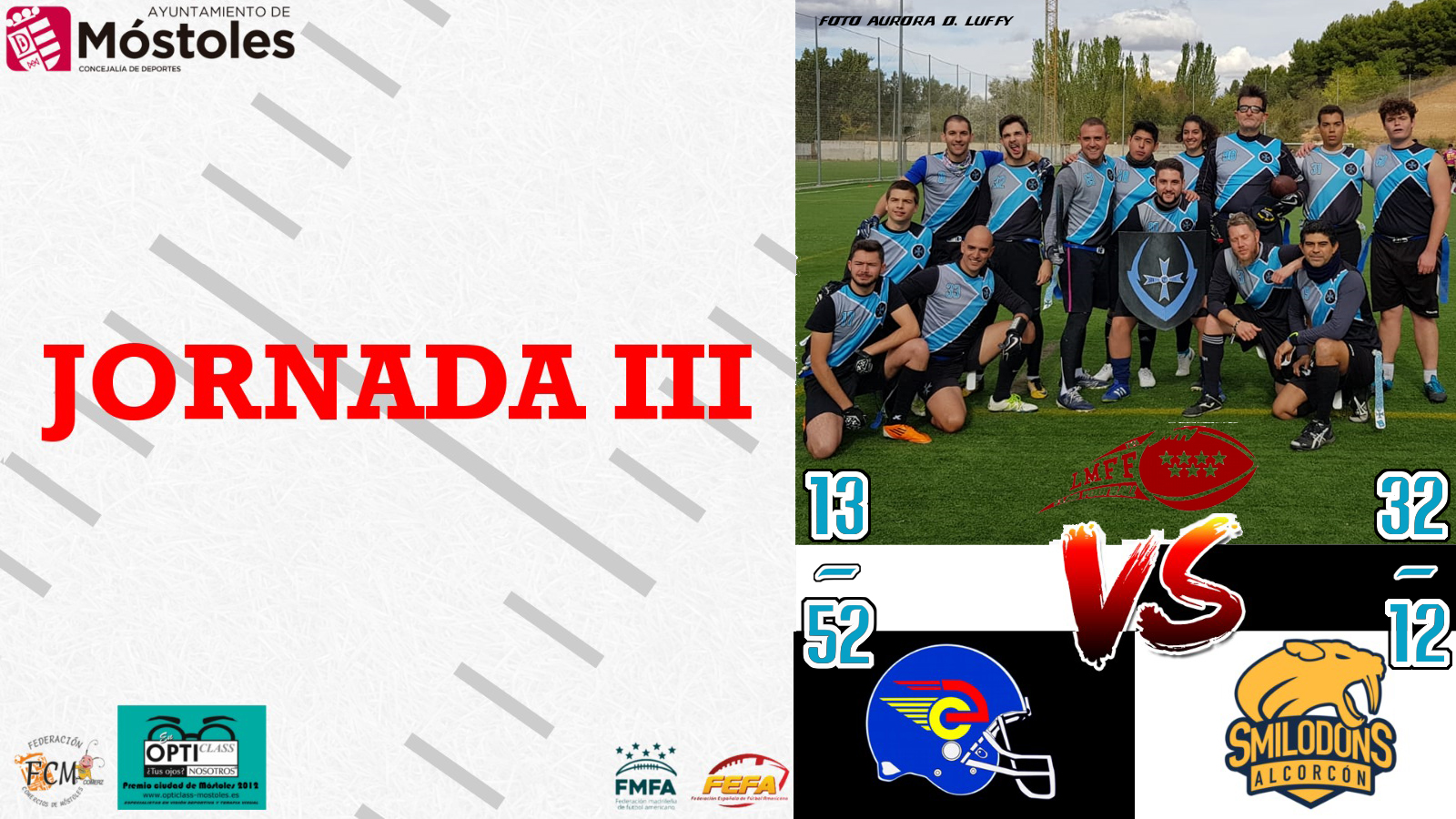 Equipo con EscudoImagen en alta resolución. Este enlace se abrirá mediante lightbox, puede haber un cambio de contextoEquipo con EscudoMóstoles Templars se desplazó este domingo en la III Jornada de la Liga Madrileña de Flag Football hasta Guadalajara, donde se medía en primer lugar a #CamionerosdeCosladaEste enlace se abrirá en una ventana nueva, vigentes Campeones de Madrid que debutaban esta temporada. Los mostoleños fueron con mucha ilusión, impulsados por su gran inicio de año, si bien no tuvieron nunca oportunidad contra uno de los mejores equipos de España. El partido finalizó con un digno 52 - 13 en contra, que hace ver todo el trabajo que aún hay que recorrer. Para Móstoles fue un honor jugar y aprender contra los mejores, sobre todo si son los amigos de un histórico como Camioneros.