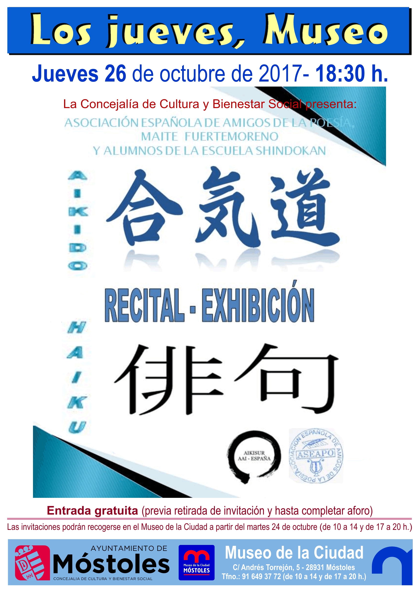 - El día 26 de octubre, a las 18.30 horas, de la mano de la Asociación Española de Amigos de la Poesía (ASEAPO) y el grupo de Aikido .