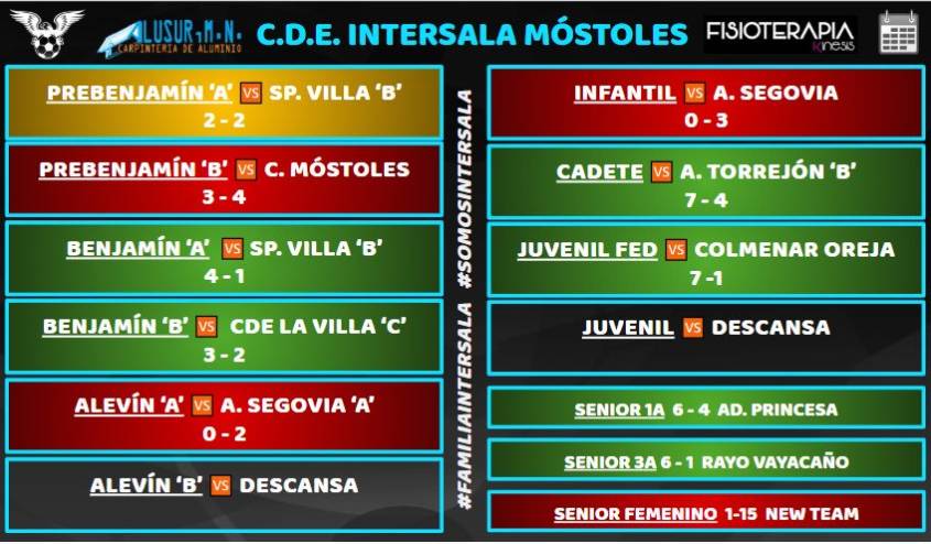 Resultados del fin de semana para los equipos del CDE Intersala Móstoles