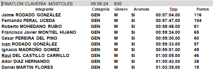 Tanto en la categoría femenina como en la masculina, el Triatlón Clavería Móstoles se encuentra en la 1ª División Nacional.
