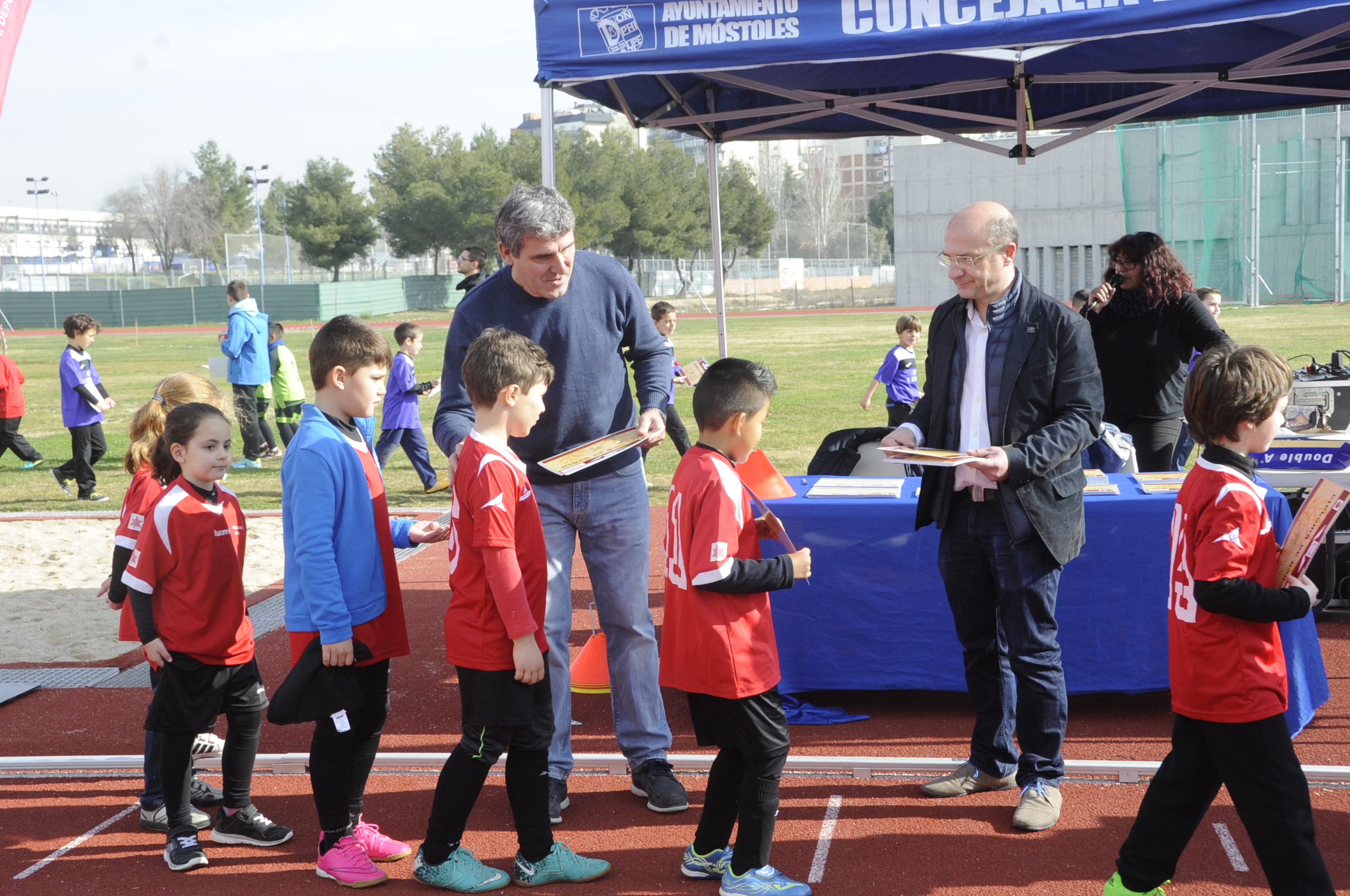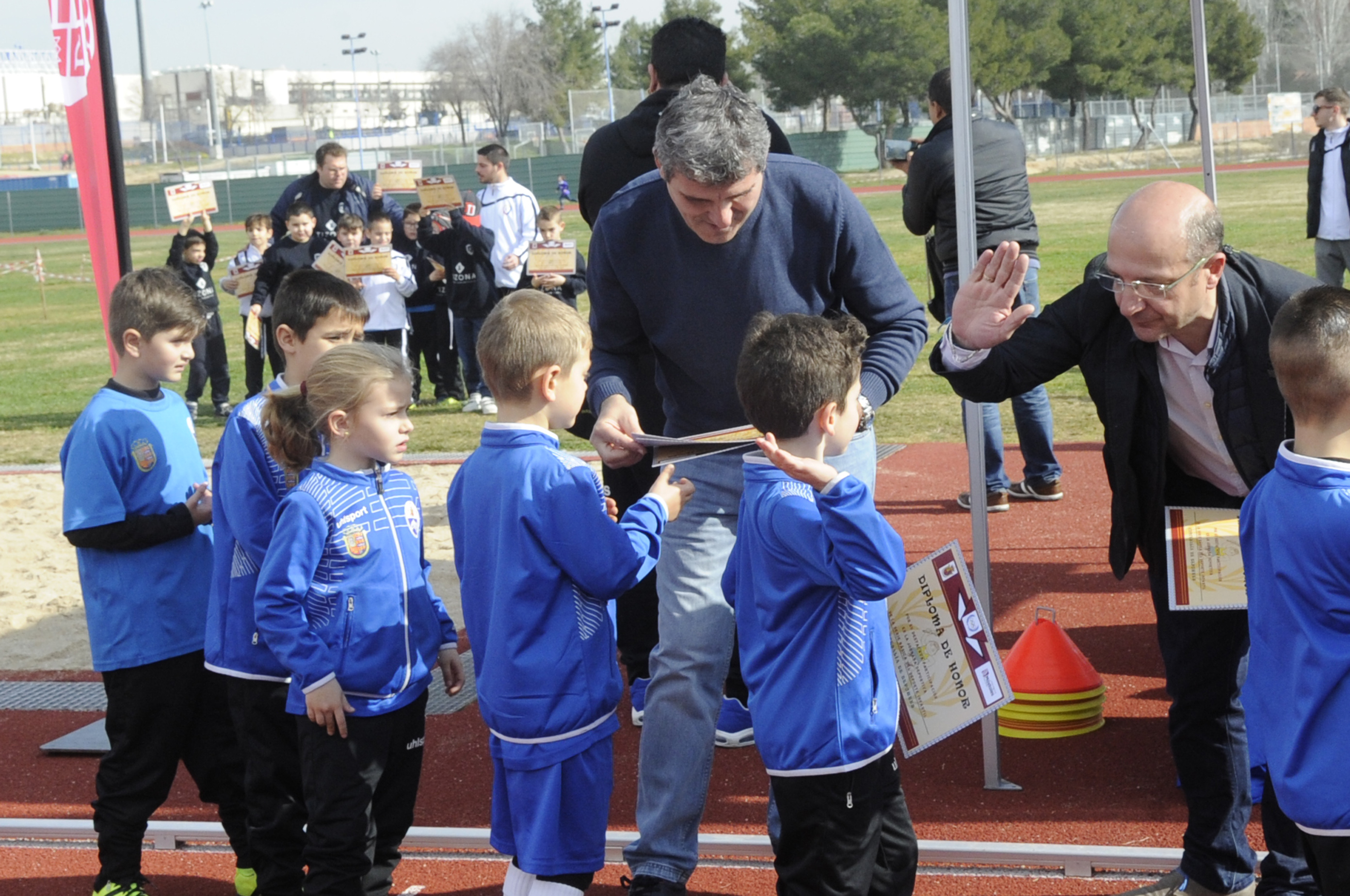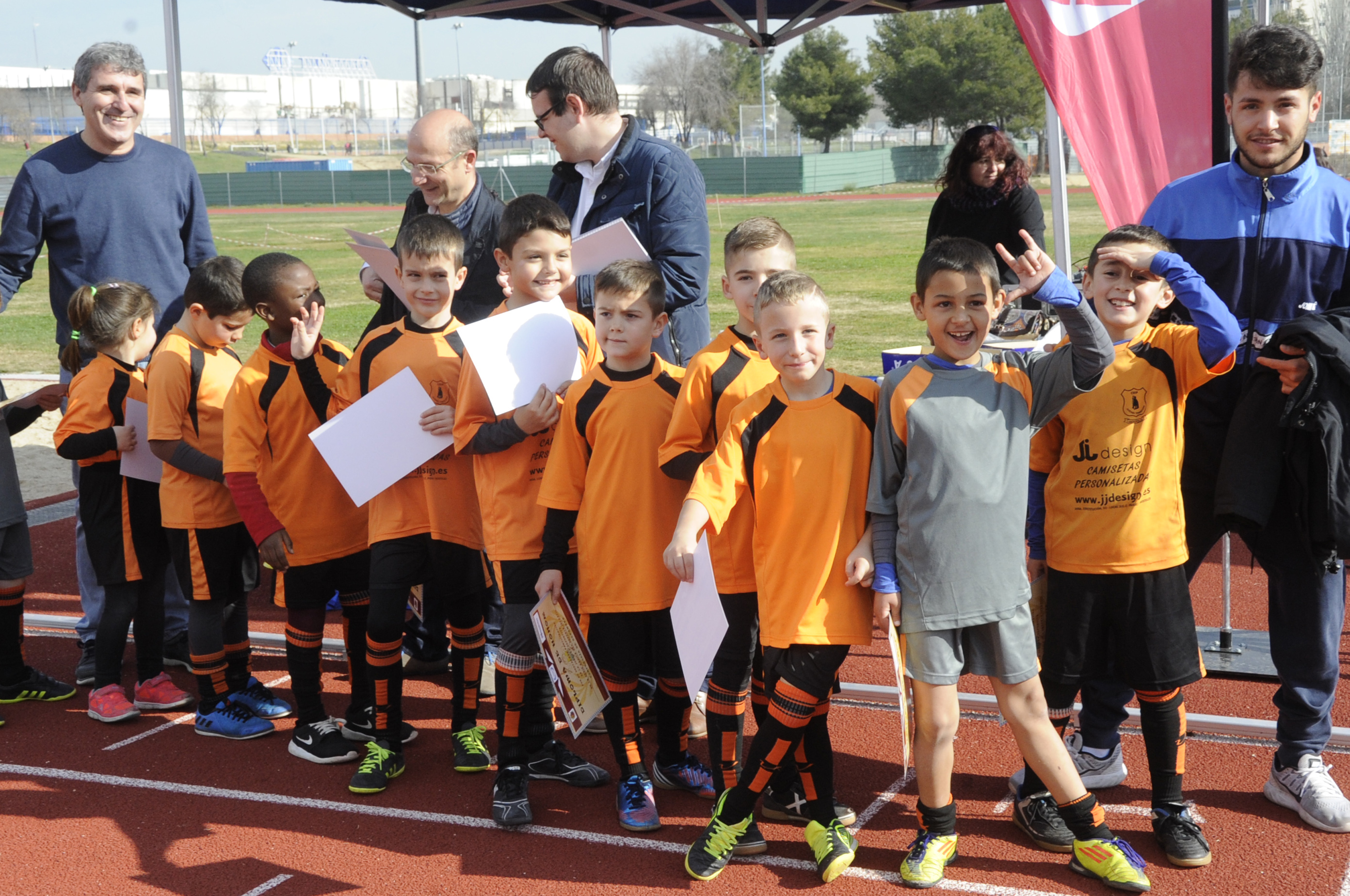 Imagen en alta resolución. Este enlace se abrirá mediante lightbox, puede haber un cambio de contextoLa pista de atletismo del polideportivo Andrés Torrejón fue escenario, el pasado sábado 18 de febrero, de la jornada "Multideporte" en la que participaron más de 400 escolares del municipio. Organizada por la Concejalía de Deportes del Ayuntamiento de Móstoles, el evento contó con la participación de jugadores de la categoría prebenjamín de fútbol sala y con deportistas de los centros educativos, los cuales durante algo más de una hora realizaron lanzamientos, salto de longitud, salto de obstáculos, carrera de control de balón y circuito.