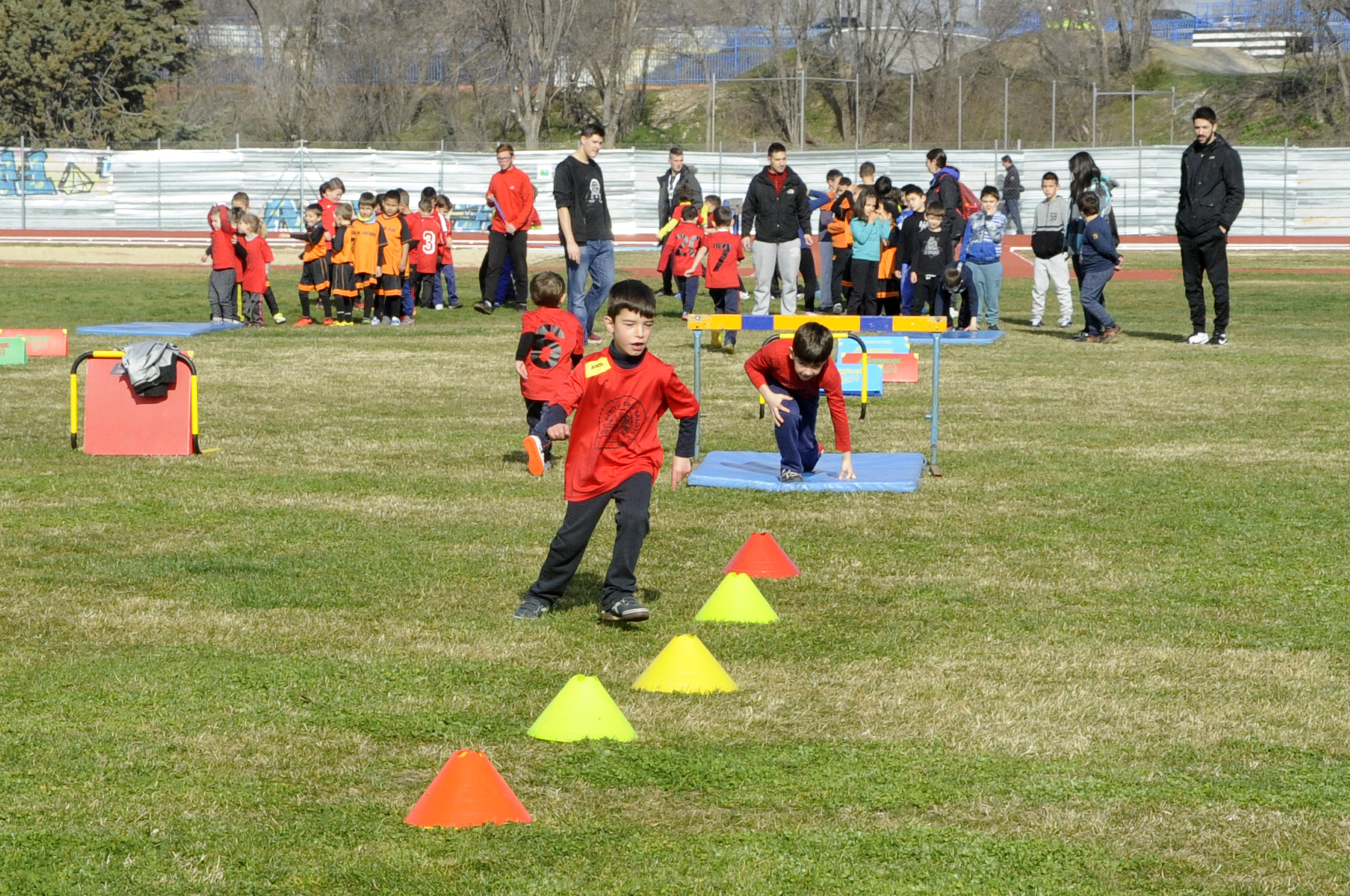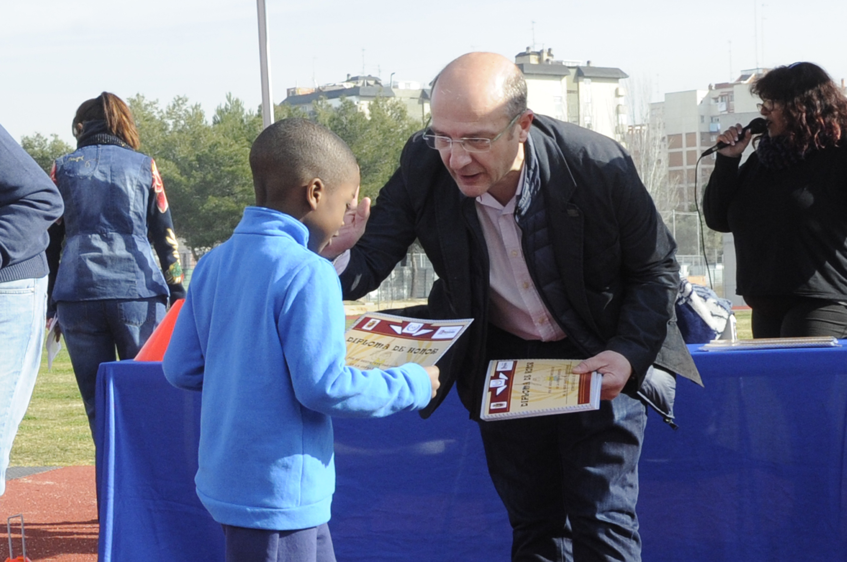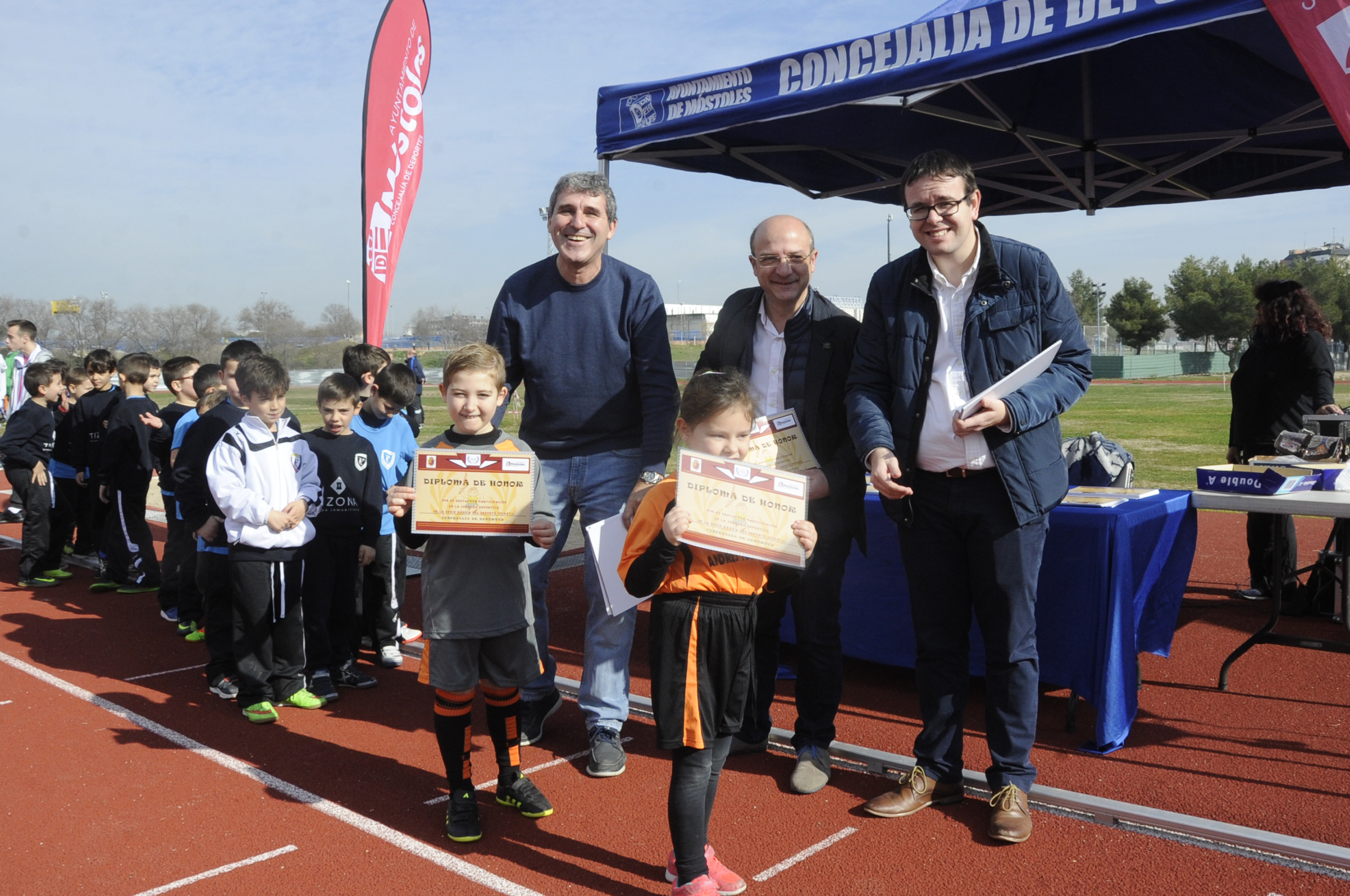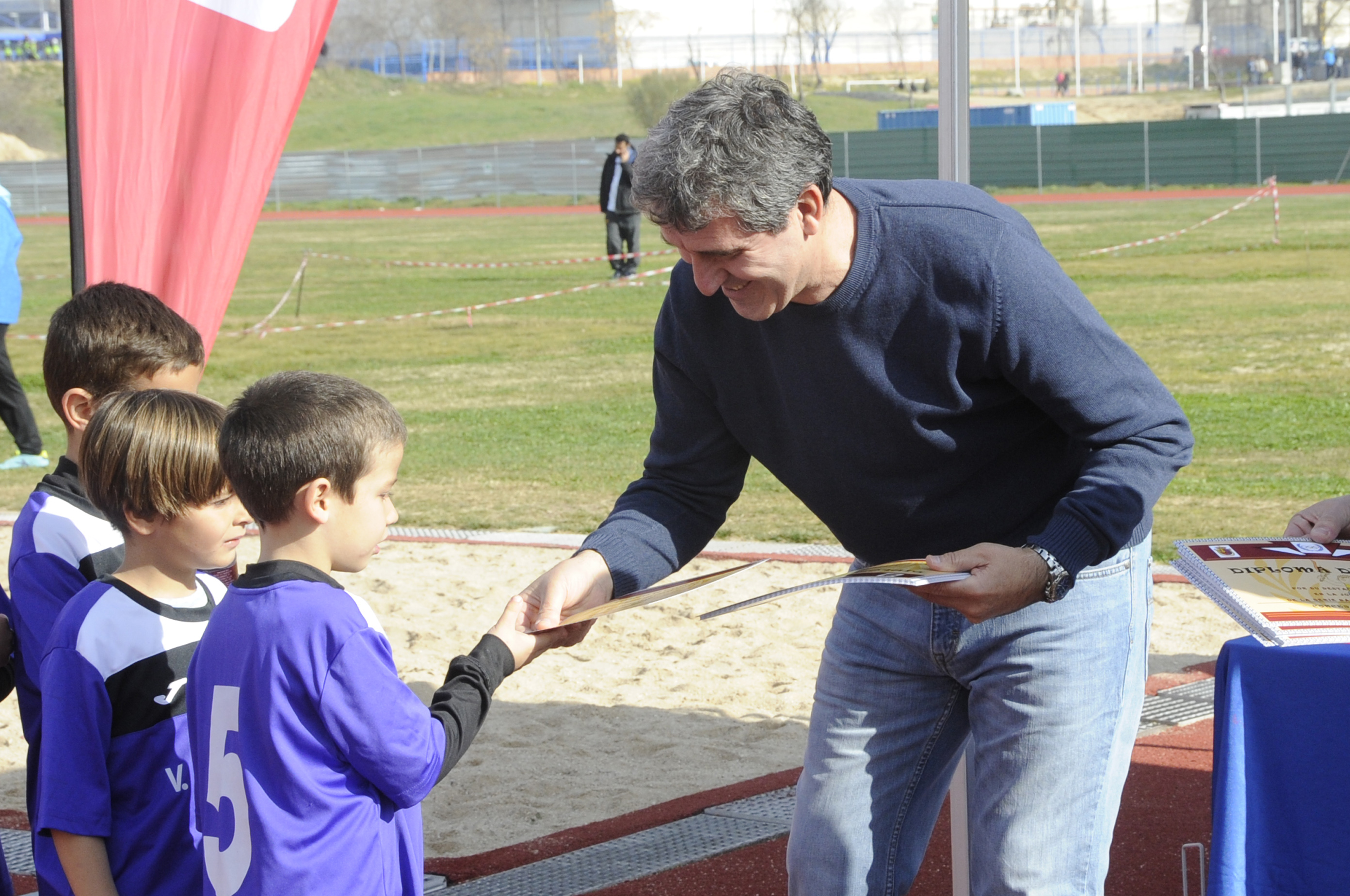 Imagen en alta resolución. Este enlace se abrirá mediante lightbox, puede haber un cambio de contextoLa pista de atletismo del polideportivo Andrés Torrejón fue escenario, el pasado sábado 18 de febrero, de la jornada "Multideporte" en la que participaron más de 400 escolares del municipio. Organizada por la Concejalía de Deportes del Ayuntamiento de Móstoles, el evento contó con la participación de jugadores de la categoría prebenjamín de fútbol sala y con deportistas de los centros educativos, los cuales durante algo más de una hora realizaron lanzamientos, salto de longitud, salto de obstáculos, carrera de control de balón y circuito.