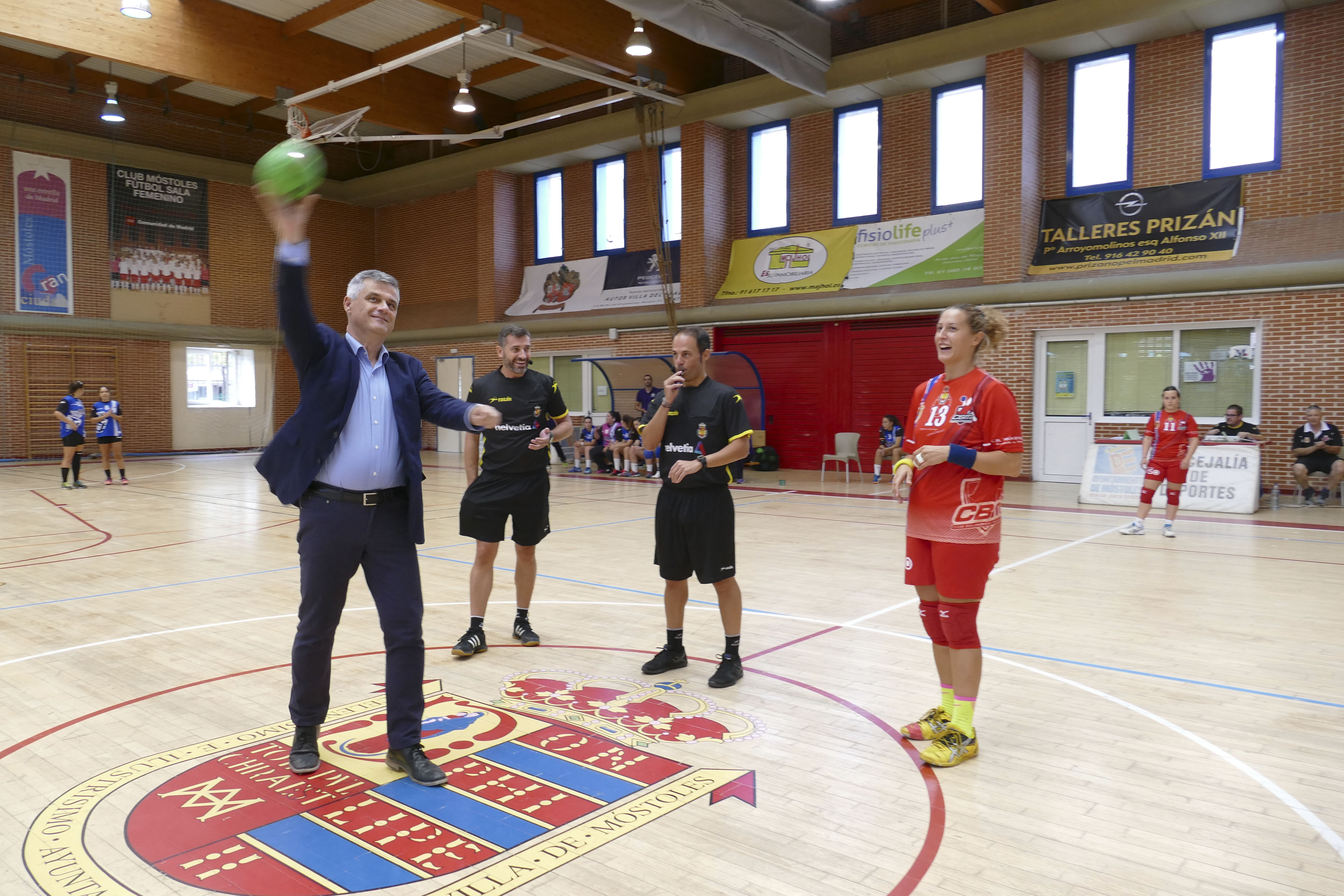 El Alcalde realiza el saque de honor del primer partido en casa de las chicas del Club Balonmano Móstoles