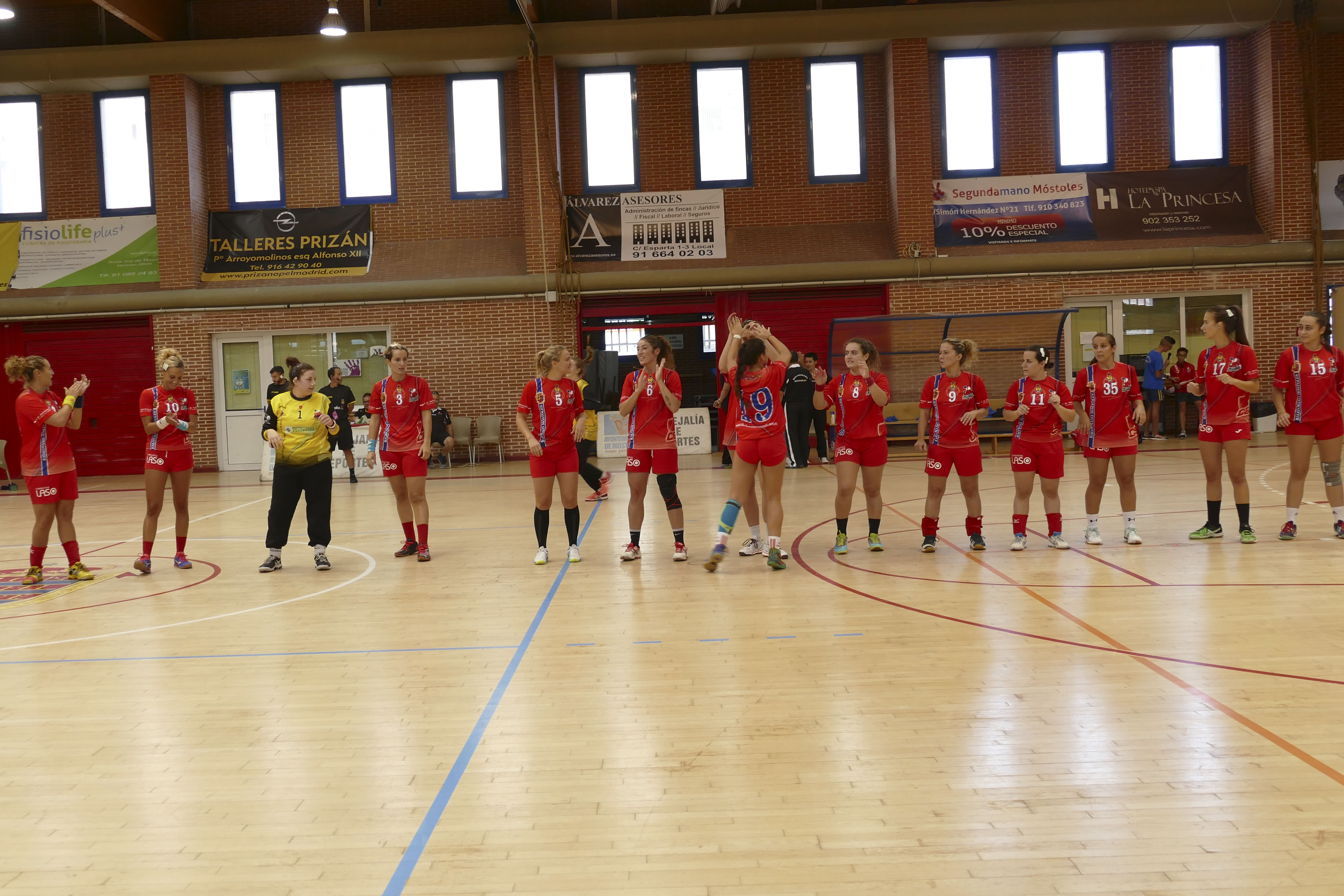 Imagen en alta resolución. Este enlace se abrirá mediante lightbox, puede haber un cambio de contextoEsta tarde, las chicas del Club Balonmano Móstoles, que regresan tras seis años, han jugado su primer partido de la División de Plata Femenina en el Grupo D en casa, concretamente en el Pabellón Municipal de Villafontana. El alcalde de Móstoles, David Lucas, ha sido el encargado de realizar el saque de honor.