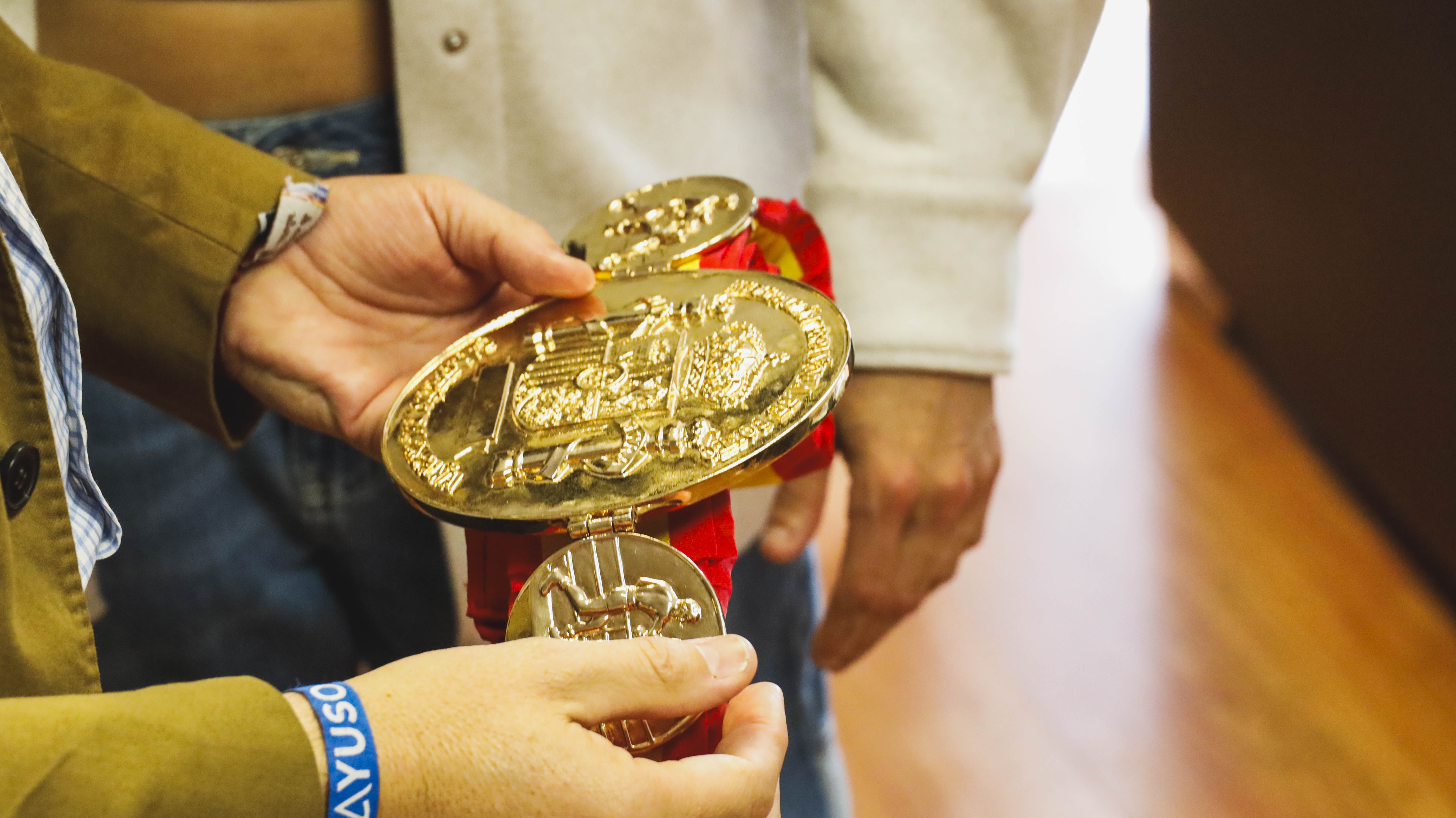 Durante el encuentro, el primer edil, acompañado del primer teniente de alcalde, Gabriel Monteserín, dio la enhorabuena en persona a la boxeadora y le ha entrega de una medalla en reconocimiento al éxito logrado.
