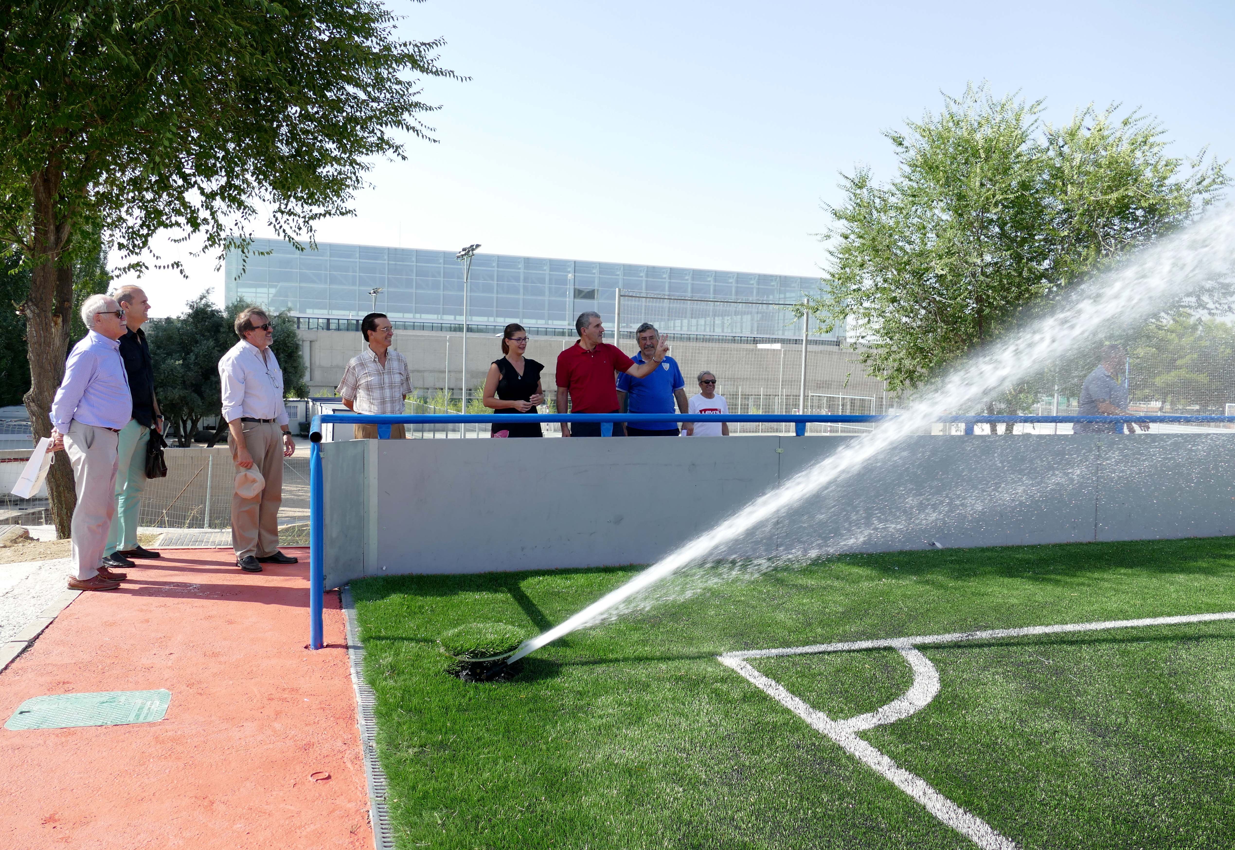 La Alcaldesa supervisa la remodelación del campo de fútbol de césped del Polideportivo Andrés Torrejón