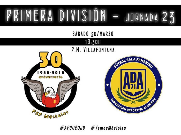 FSF Móstoles 1Imagen en alta resolución. Este enlace se abrirá mediante lightbox, puede haber un cambio de contextoFSF Móstoles 1Por tercera jornada consecutiva, nuestro primer equipo disputará un nuevo derbi madrileño, esta vez ante AD Alcorcón FSF.