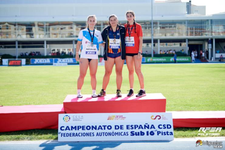Podium Lucía Rodríguez en PamplonaPodium Lucía Rodríguez en PamplonaLa atleta mostoleña Lucía Rodríguez logró la medalla de bronce en la categoría de lanzamiento de peso en el Campeonato de España sub 16 de selecciones autonómicas en pista, que se disputó el pasado fin de semana en Pamplona.