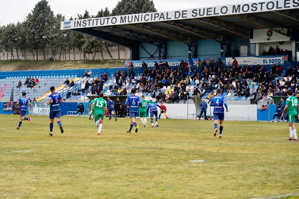 Tras el descanso, el CD Móstoles salió al césped de El Soto con una intensidad alta y buscando abrir el marcador lo antes posible. En el minuto 50, Pradillos adelantaba a los azulones con un remate de cabeza, tras un saque de esquina botado por Portilla.