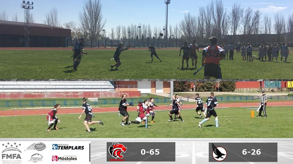 Imagen en alta resolución. Este enlace se abrirá mediante lightbox, puede haber un cambio de contextoEl pasado domingo se disputó en Fuenlabrada la séptima jornada de la liga madrileña de `Flag Football´ con muy buenas noticias para el Móstoles Templars que se jugaba la temporada. Y consiguió dos rotundas victorias frente a el Capitals femenino y contra el equipo local, Cuervos. Con este resultado, el equipo mostoleño consigue entrar en la Final Four, que da derecho a pelear por el título de liga y a luchar por participar en la `Spanish Flag Bowl´, de categoría nacional.