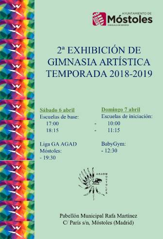 Imagen en alta resolución. Este enlace se abrirá mediante lightbox, puede haber un cambio de contextoEste sábado 6 de abril a partir de las 17:00h y el domingo 7 de abril a partir de las 10:00h, tendrá lugar una exhibición escolar de gimnasia artística, con la participación de los más pequeños, junto con el grupo de escolares de iniciación y gimnastas del club en la Liga de Gimnasia Artística Interna de Móstoles.