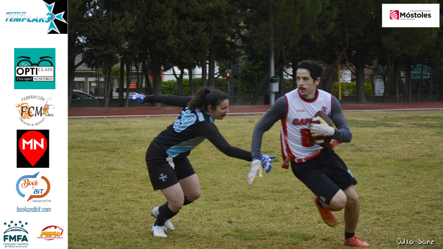 Imagen en alta resolución. Este enlace se abrirá mediante lightbox, puede haber un cambio de contextoEl pasado domingo Templars logró el tercer puesto de la Final Four de la Liga Madrileña de Flag Football. Yanira Díaz, integrante del equipo, se convirtió así en la primera mujer en jugar la Final Four de la LMFF, con lo que se "demuestra que el Flag es un deporte inclusivo e integrador", aseguran desde Móstoles Templars..