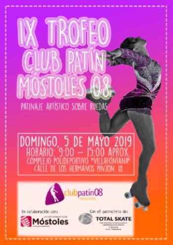 El próximo día 5 de mayo tendrá lugar en el Polideportivo de Villafontana (calle Hermanos Pinzón 18), en horario de 9:00 a 15:00 horas, el IX Trofeo del Club Deportivo Elemental Patín Móstoles 08 en colaboración con el Ayuntamiento de Móstoles.