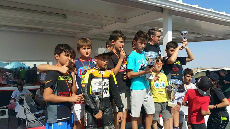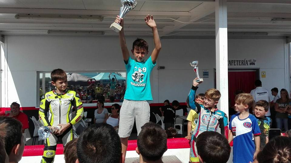 Imagen en alta resolución. Este enlace se abrirá mediante lightbox, puede haber un cambio de contextoEl pasado fin de semana se celebró en el circuito DR7 de Tarancón (Cuenca), la cuarta prueba del Campeonato de Madrid , donde participó Marco García en las categorías de MiniGp 110 y Minimotard 65. De nuevo fue un gran día para el mostoleño, porque volvió a conseguir otro doblete ganando las dos carreras. En MiniGp 110 obtuvo la pole y desde el principio encabezó la prueba hasta lograr la victoria. En Minimotard 65 salió en 2° posición, pero hizo una buena salida colocándose en primera posición y corrió muy fuerte hasta el final de la carrera logrando la victoria. Además, en ambas competiciones logó la vuelta rápida del circuito.