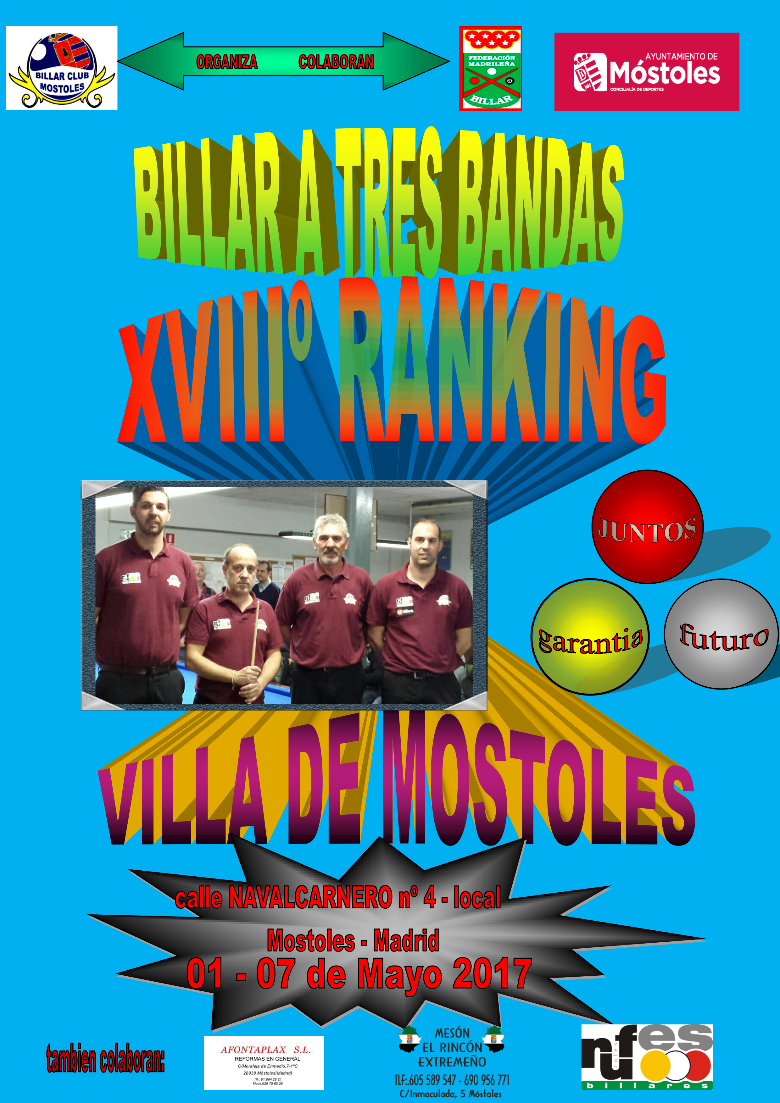 Los mejores jugadores de billar de Madrid en el XVIII Torneo Ránking Villa de Móstoles de billar a tres bandas