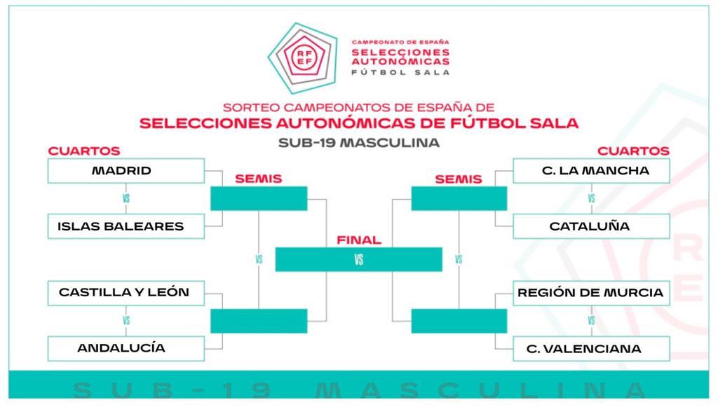 Los enfrentamientos de los ocho equipos clasificados en la categoría Sub-19 que disputarán los cuartos de final, el viernes 26 de enero, son: la Selección de Madrid contra la Selección de las Islas Baleares; la Selección de Castilla y León contra la Selección Andaluza; la Selección de Castilla-La Mancha contra la Selección de Cataluña; y, por último, la Selección de la Región de Murcia contra la Selección de la Comunidad Valenciana. De estos enfrentamientos saldrán los ganadores que disputarán las semifinales, el sábado 27 de enero.