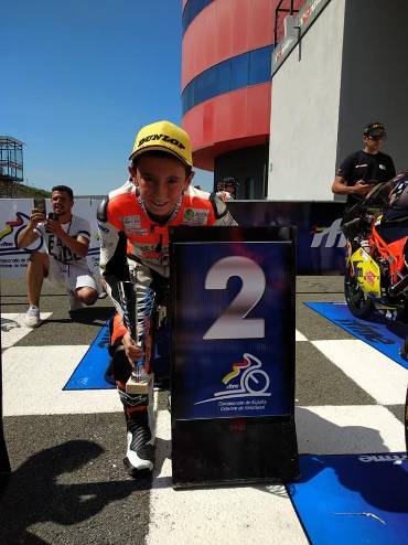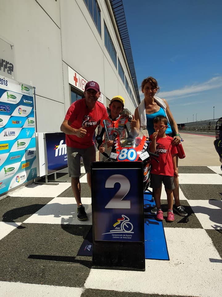 Imagen en alta resolución. Este enlace se abrirá mediante lightbox, puede haber un cambio de contextoGran fin de semana de carreras para el motorista mostoleño Marco García que alcanzó la segunda posición en la última carrera del Campeonato de España de velocidad, celebrada en el Circuito de Los Arcos en Navarra este fin de semana, en la categoría de MOTO 5. El domingo ya en carrera después de una gran lucha con todos los pilotos, Marco García entró en meta en segunda posición P2 y, en la vuelta rápida, García logró un crono de 2:03.119, con el que se convirtió una vez más en el piloto más rápido del fin de semana
