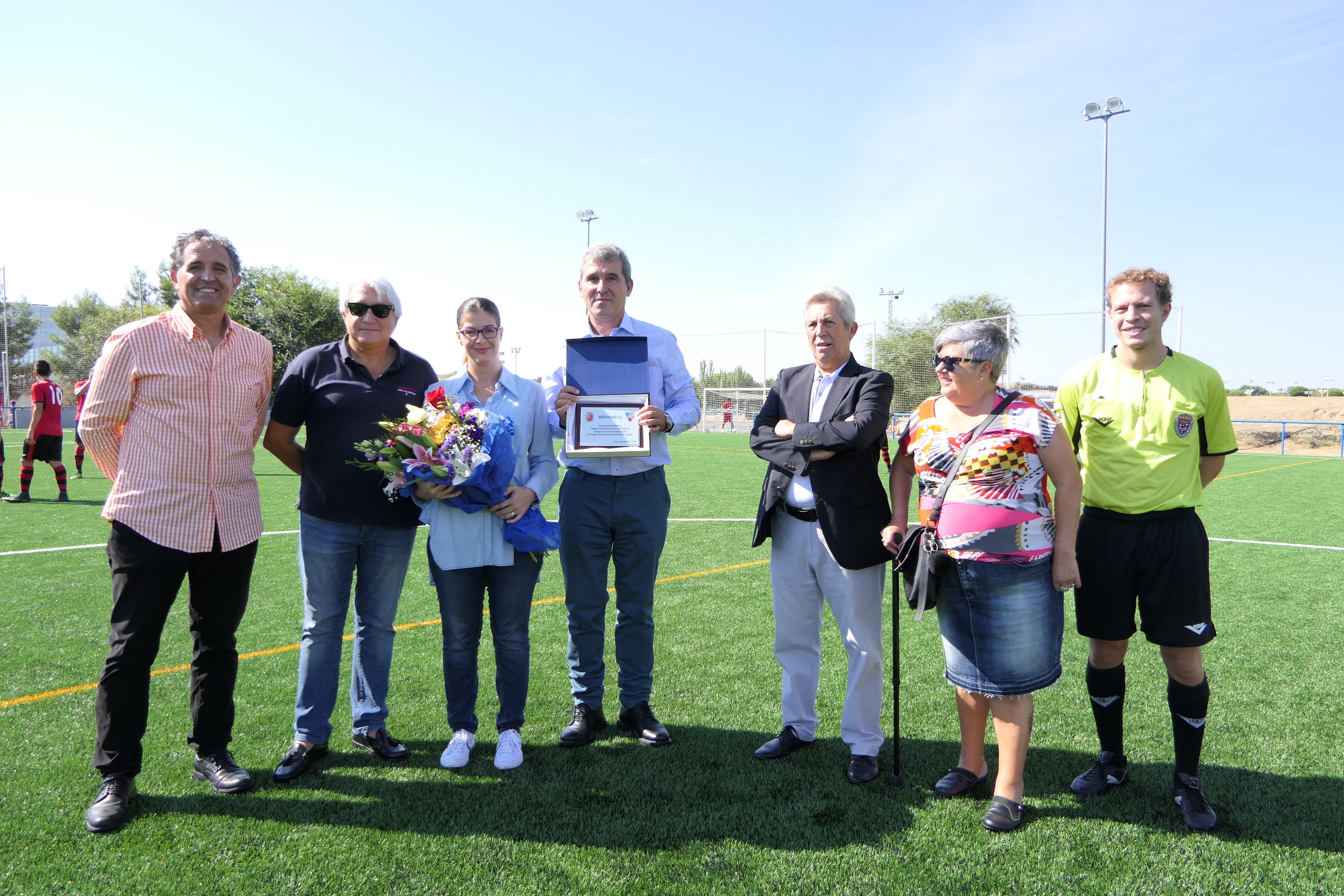 Imagen en alta resolución. Este enlace se abrirá mediante lightbox, puede haber un cambio de contextoCon motivo de la disputa del primer partido oficial en el renovado césped artificial del Campo Municipal de Fútbol Andrés Torrejón, la alcaldesa de Móstoles, Noelia Posse, realizó esta mañana el saque de honor del encuentro organizado entre el Móstoles CF y AD Arganda. En la ceremonia también estuvieron presentes el concejal de Deportes, Obras, Infraestructuras y Mantenimiento de Vías Públicas, Agustín Martín, la concejala de Patrimonio, Beatriz Benavides, el presidente del Móstoles CF, Antonio del Cerro Martin, miembros de su junta directiva, y aficionados en general.